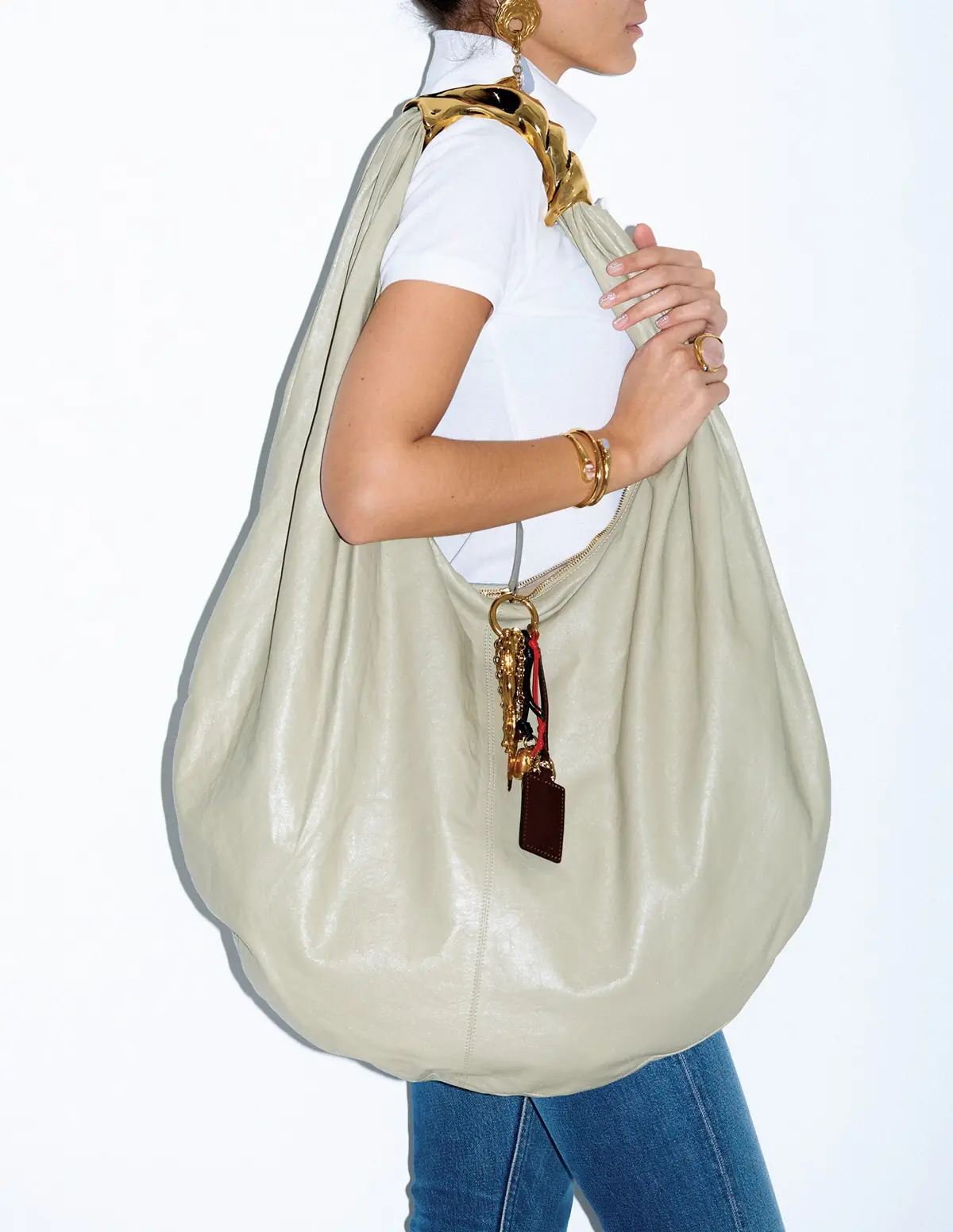 Oversized torbe pojavljuju se kao trend već nekoliko godina unazad. Njihov povratak kao da je suptilno najavila jedna scena iz kultne serije Succession, o posrnulim milijarderima, koju nismo propuštali. Sjetite se samo epizode u kojoj cinični Tom Wambsgans otvoreno ismijava Burberry tote torbu, pokušavajući shvatiti što je djevojka Gregova rođaka ponijela sa sobom na rođendansku zabavu – jesu li to ravne cipele za metro, kutija za ručak ili možda čak i set za kampiranje? Bio je to otvoreni napad na oversized torbe. Međutim, modna industrija očito je odlučila riskirati – i danas imamo neočekivani obrat i novi diktat: sve je dopušteno, i ponovno živjela XXL veličina!