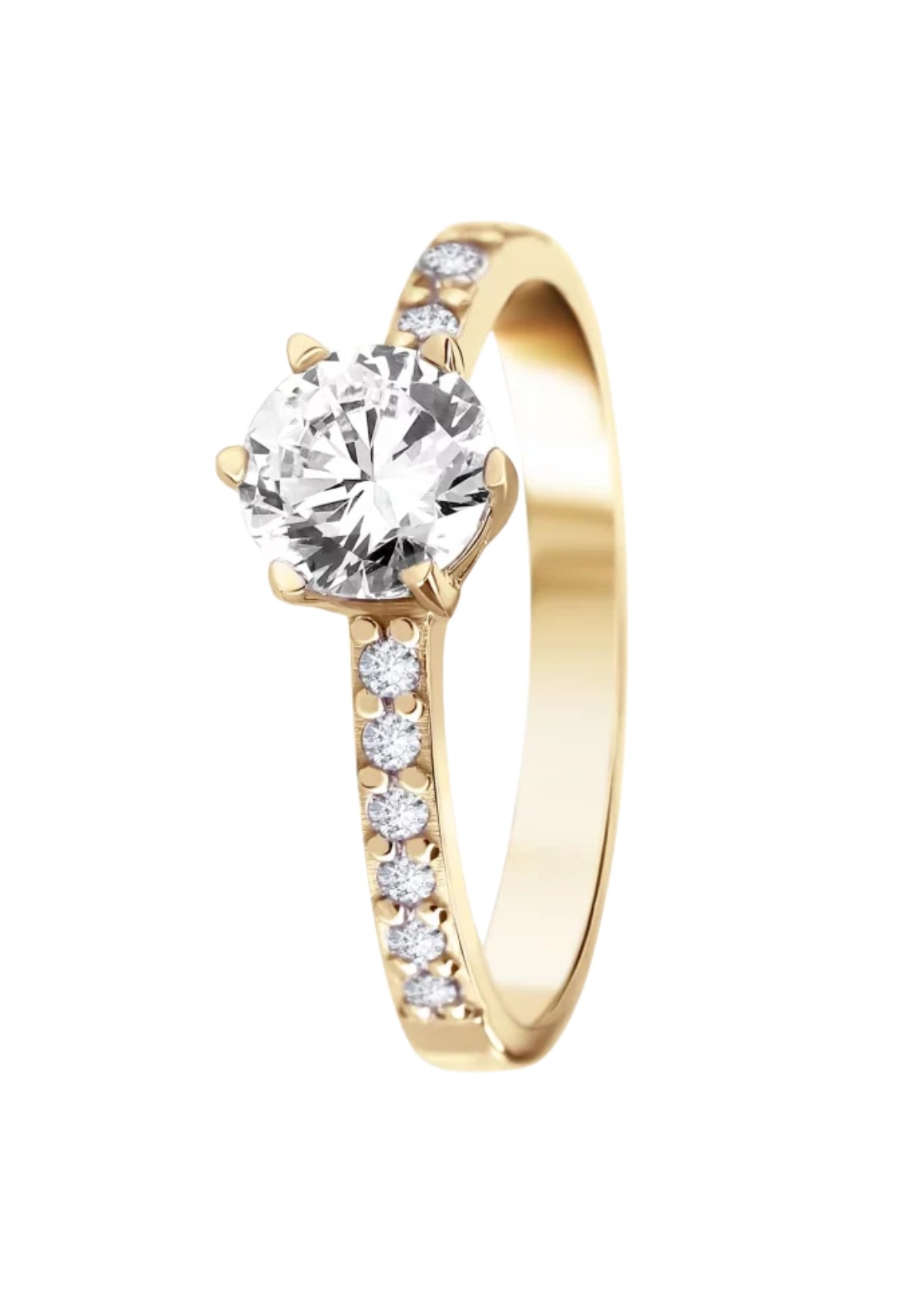 Vratimo se u sadašnjost, gdje se biraju modernije interpretacije ovog stila. Fuller, koja je i sama ponosna vlasnica masivnog zaručničkog prstena, primjećuje da se sve više klijenata odlučuje i za prstenje u boji. “Dijamanti definitivno ostaju najpopularniji izbor kamena, ali primijetila sam popriličan porast interesa za dodavanje dragog kamenja u boji uz dijamante, kao način izražavanja osobnosti ili oživljavanja naslijeđenog obiteljskog kamenja”, objašnjava.