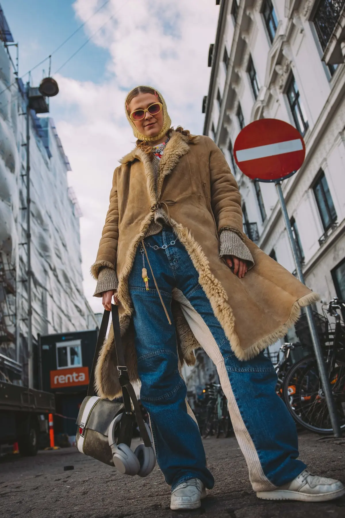 A scarf wrapped around the head, or a knitted headscarf, is one of the chicest ways to replace a “regular” wool hat. This winter I’m especially excited about outfits with knitted scarves big enough to cover the shoulders and back, especially when they come in bright colours or with interesting patterns that instantly lift a winter look (which is often grey and a bit dull).