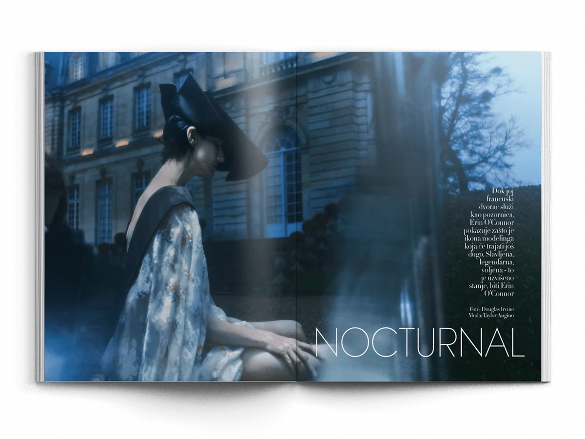 The cover of the December issue features Erin O’Connor, one of the most recognizable faces in the fashion industry, a muse to designers such as Galliano, Gaultier, and McQueen, whom Karl Lagerfeld once described as one of the best models in the world. The British model and icon of modeling perfectly embodies the mystique of the night in look number 30 from designer Dilara Findikoglu’s Spring 2026 collection, for which she was recently awarded the prestigious Vanguard Award at the Fashion Awards 2025. Photographed by Douglas Irvine, with fashion by Taylor Angino, all images were shot at night, revealing night as a time when we can finally shed our daytime roles, rituals, and expectations, and surrender to celebration, mysticism, and our deepest longings.