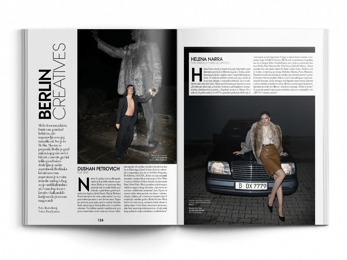 For one of our night stories, we traveled to Berlin, a city known for its open mindedness, honesty, rebellious spirit, intensity, and uniqueness. Berlin’s creative scene is constantly flourishing, largely thanks to its multiculturalism, to which creatives of Balkan heritage make a significant contribution. Tina Lončar spoke with nine prominent figures from Berlin’s fashion scene, sharing stories of their career journeys, inspirations, and life in Berlin, as well as reflections on what makes the city so unique. The nighttime photography is by Boris Kralj, who has been building a successful career in fashion photography in this city for more than two decades.