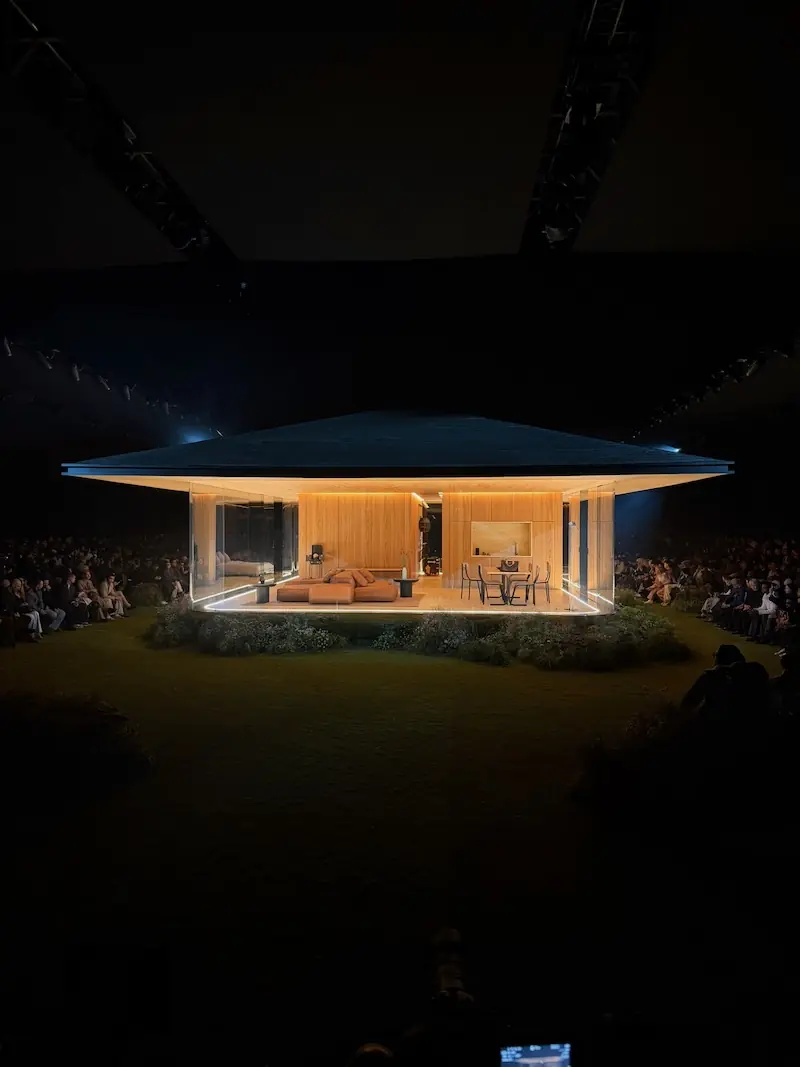 The moment when Pharrell personally went to shake hands with guests in the front row last night made me aware of how much I admire him, and if we add to that the fact that he is a designer, producer, musician, and investor, one has to wonder where his creativity ends, as I am still a big fan of his music. Last night, however, he briefly became an architectural visionary. “I’m not an architect. I build solutions,” Pharrell Williams told Architectural Digest on this occasion. The house that was installed is called Drophaus, and the innovative residential concept was developed in collaboration with the architectural and design firm NOT A HOTEL, led by Shinji Hamauzu. Over the past few years, they have realized a series of vacation homes in Japan that, instead of a traditional rental model, offer users the possibility of partial ownership. Last year, Pharrell and his close collaborator Nigo were appointed investors and creative advisors to the company, and several projects are already in development. We are eagerly awaiting what comes next.