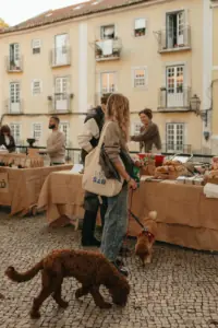 At a handful of stalls, local producers sell seasonal and organic vegetables, freshly cut flowers, bread, wine and dishes from nearby restaurants. The atmosphere is relaxed. People linger and talk. As I walk between the stalls, it becomes clear why Portugal has been quietly pulling me back for years. Everything I visited that day in Lisbon, from the bookshop to the square, from the bistro to this small market, is connected by the same thread. Community. A more conscious way of living. A connection to what we consume and to the people around us.