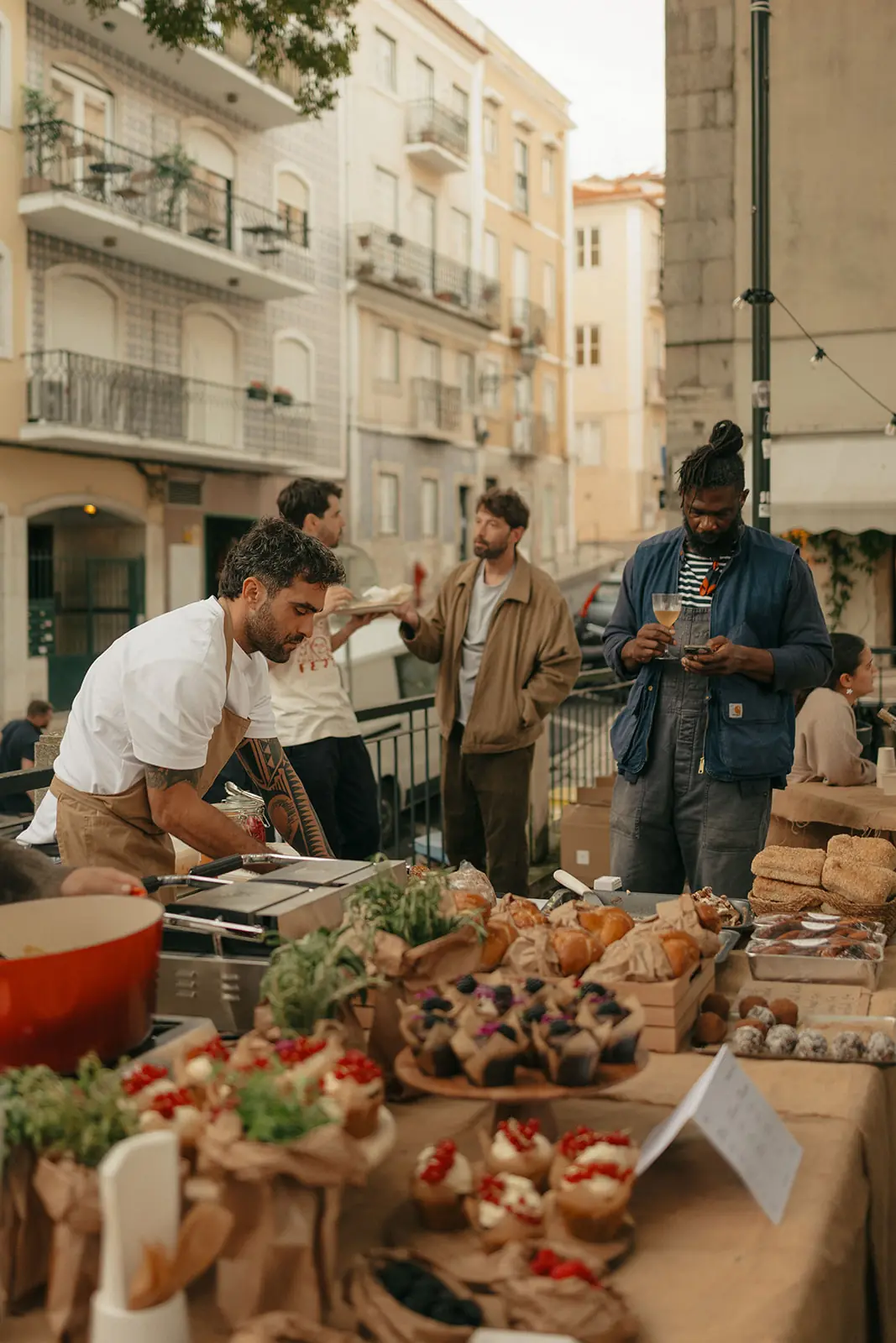 At a handful of stalls, local producers sell seasonal and organic vegetables, freshly cut flowers, bread, wine and dishes from nearby restaurants. The atmosphere is relaxed. People linger and talk. As I walk between the stalls, it becomes clear why Portugal has been quietly pulling me back for years. Everything I visited that day in Lisbon, from the bookshop to the square, from the bistro to this small market, is connected by the same thread. Community. A more conscious way of living. A connection to what we consume and to the people around us.