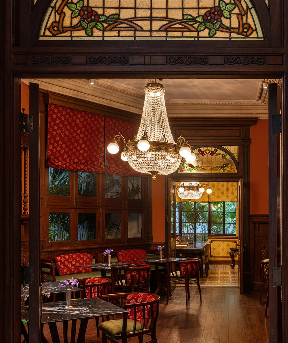 Each room in the villa, from the Pastry Shop and The Caffè to the library and the intimate dining room, is designed as a separate visual chapter where Italian and Shanghainese influences meet like shots from Wong’s films. For me, the most charming aspect was that it felt as if I had stepped directly into his iconic film In the Mood for Love, which I adore.