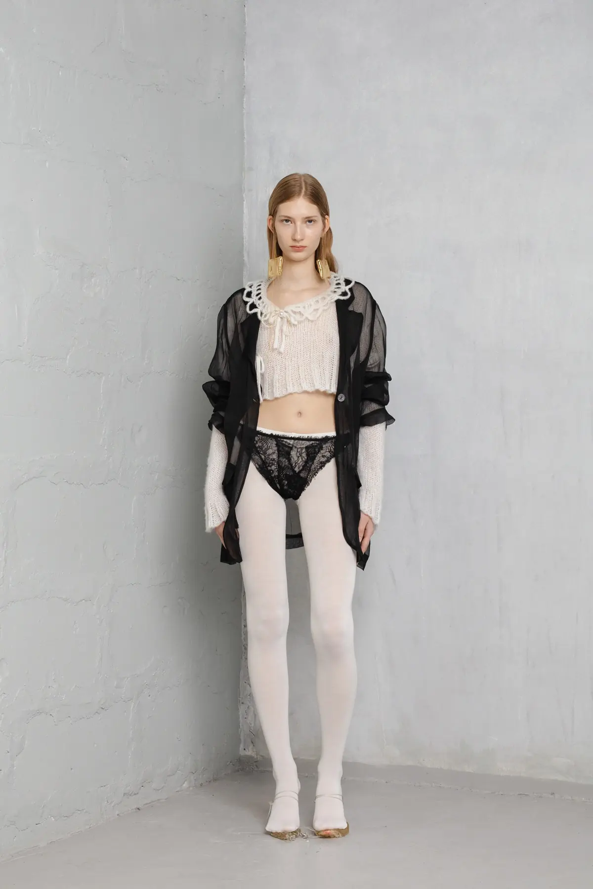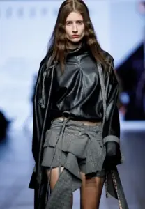 Tribal Hotel, the brand founded by designer Simone Veilande in Riga, presented its collection in the form of a live presentation. While it was fascinating to experience the garments up close and explore their rich textures and intricate cuts, I couldn’t help but imagine how extraordinary these designs would look in motion—brought to life on the runway. The designer duo’s artistic background is palpable throughout their creative process, one guided by an uninhibited visual sensibility. As they explain, they allow themselves to explore freely and without constraint until the result feels aesthetically fulfilling. The final executions, often leaning toward the experimental, achieve a surprising sense of elegance once in synergy with the body—despite the unconventional combinations of traditional and high-tech fabrics, knits, oversized volumes, and seemingly incompatible textures.