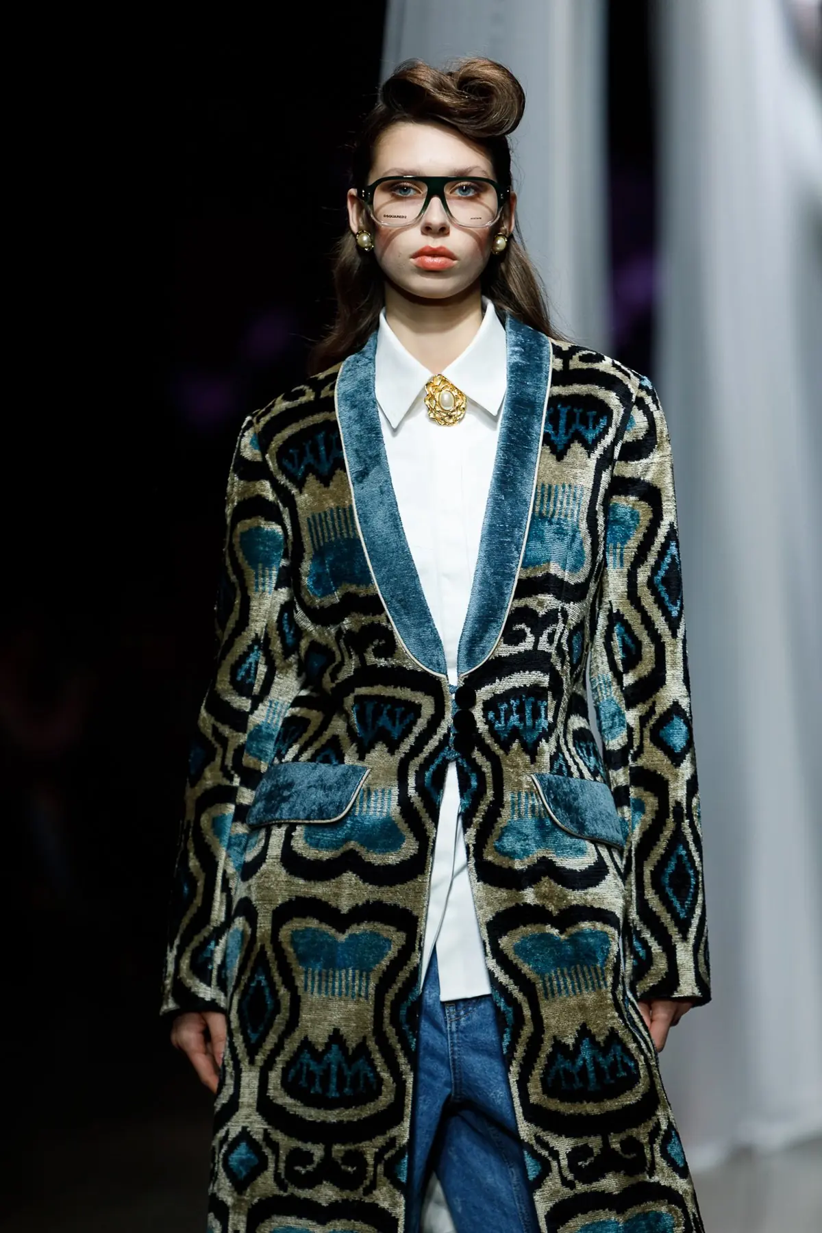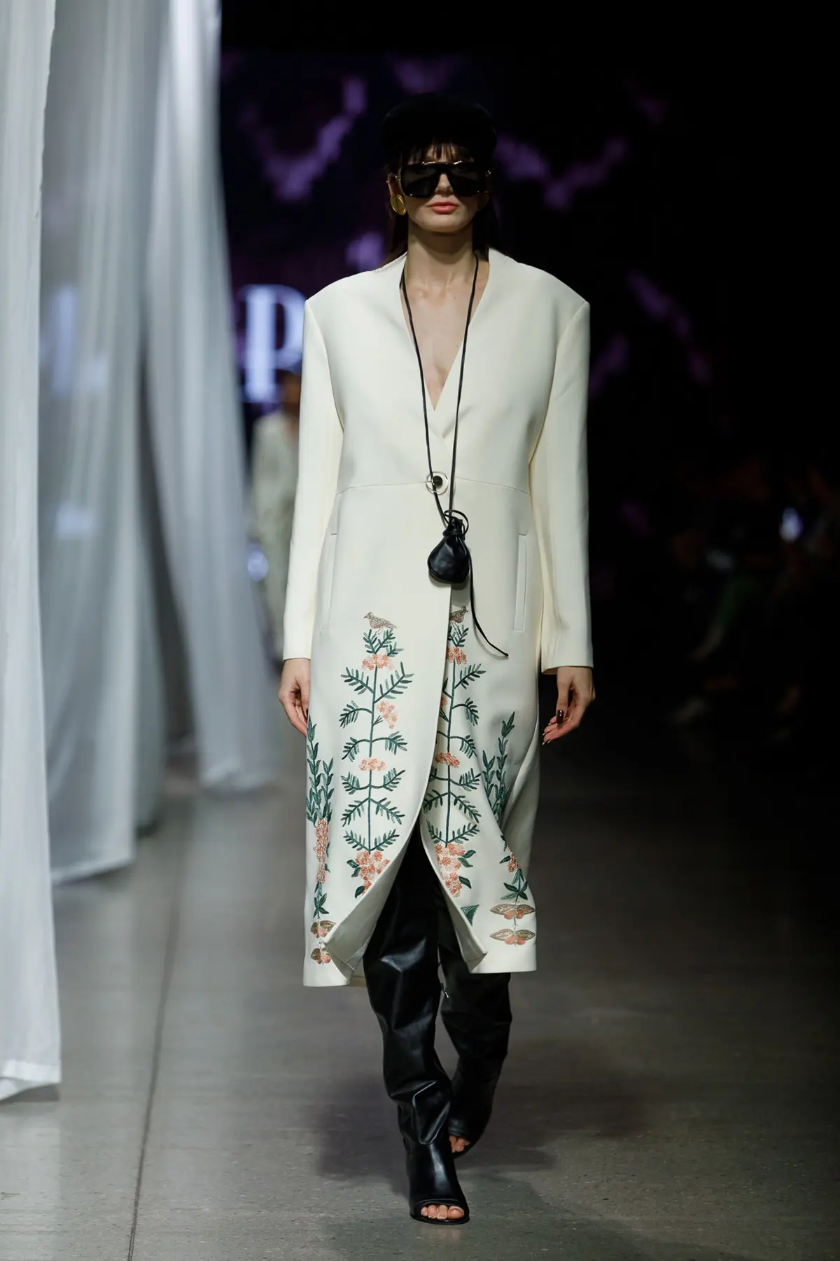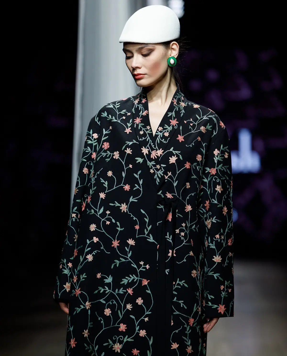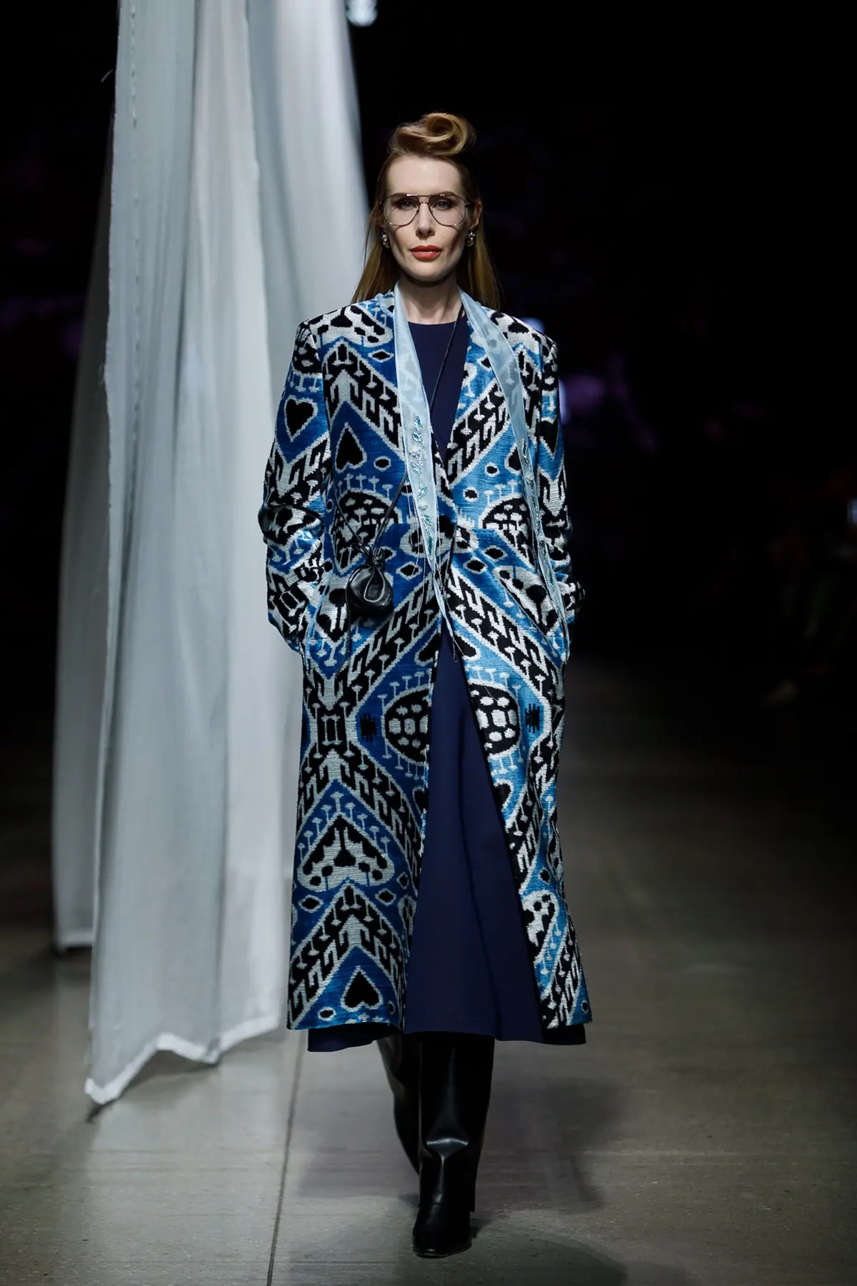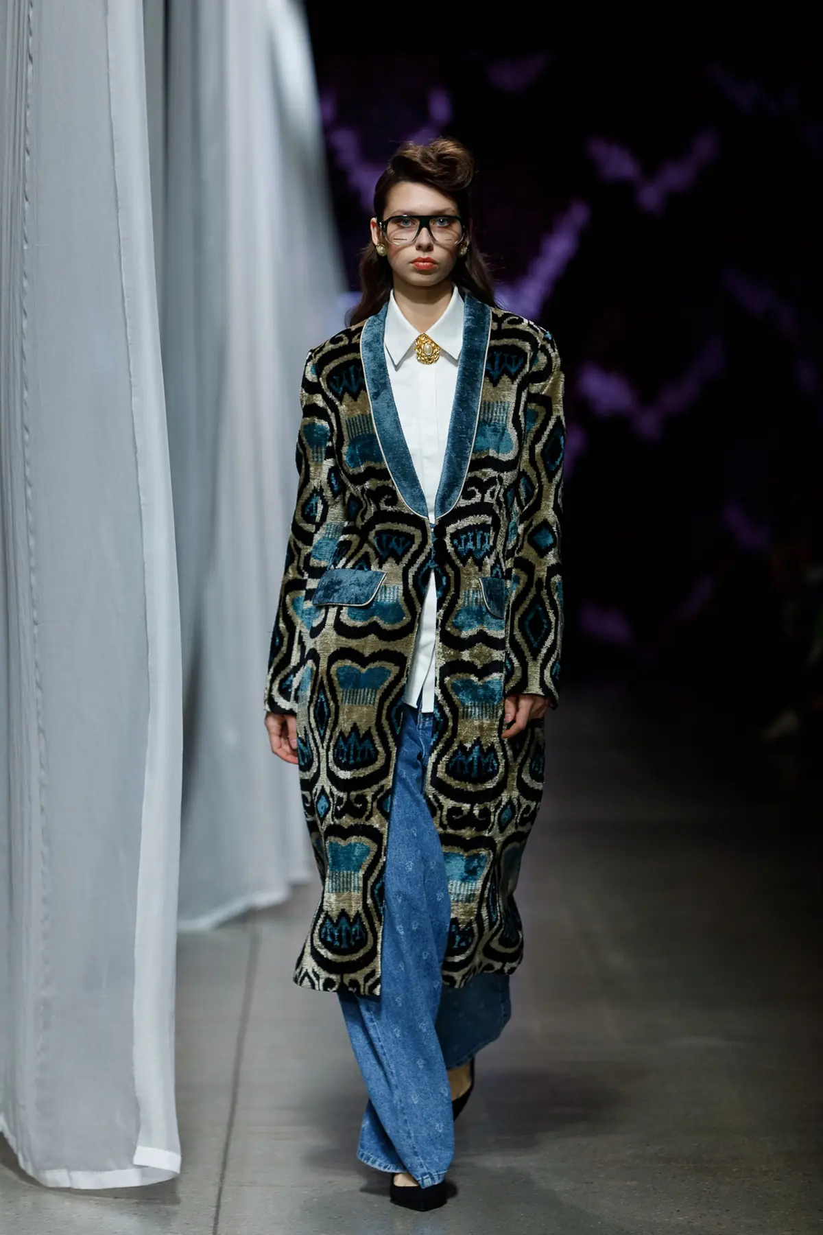 Moel Bosh is an Uzbek brand that brings the traditional elements and craftsmanship of Central Asian dressmaking into a contemporary fashion context. While the silhouettes remain rooted in classic lines—almost with a Dior-like sophistication—the true excitement lies in the colors, patterns, intricate embroidery, and exquisite handwork that, to say the least, leave a striking impression. The distinctive traditional Uzbek motifs feel so fresh and relevant that I dare compare them to the painterly sensibility of Dries Van Noten, particularly in the way colors, prints, and textures are masterfully intertwined. This collection reaffirms that artisanal heritage remains an invaluable treasure for fashion today—one that must be preserved. As the designer herself explains, the collection is a celebration of origin and heritage, of femininity and inner strength.