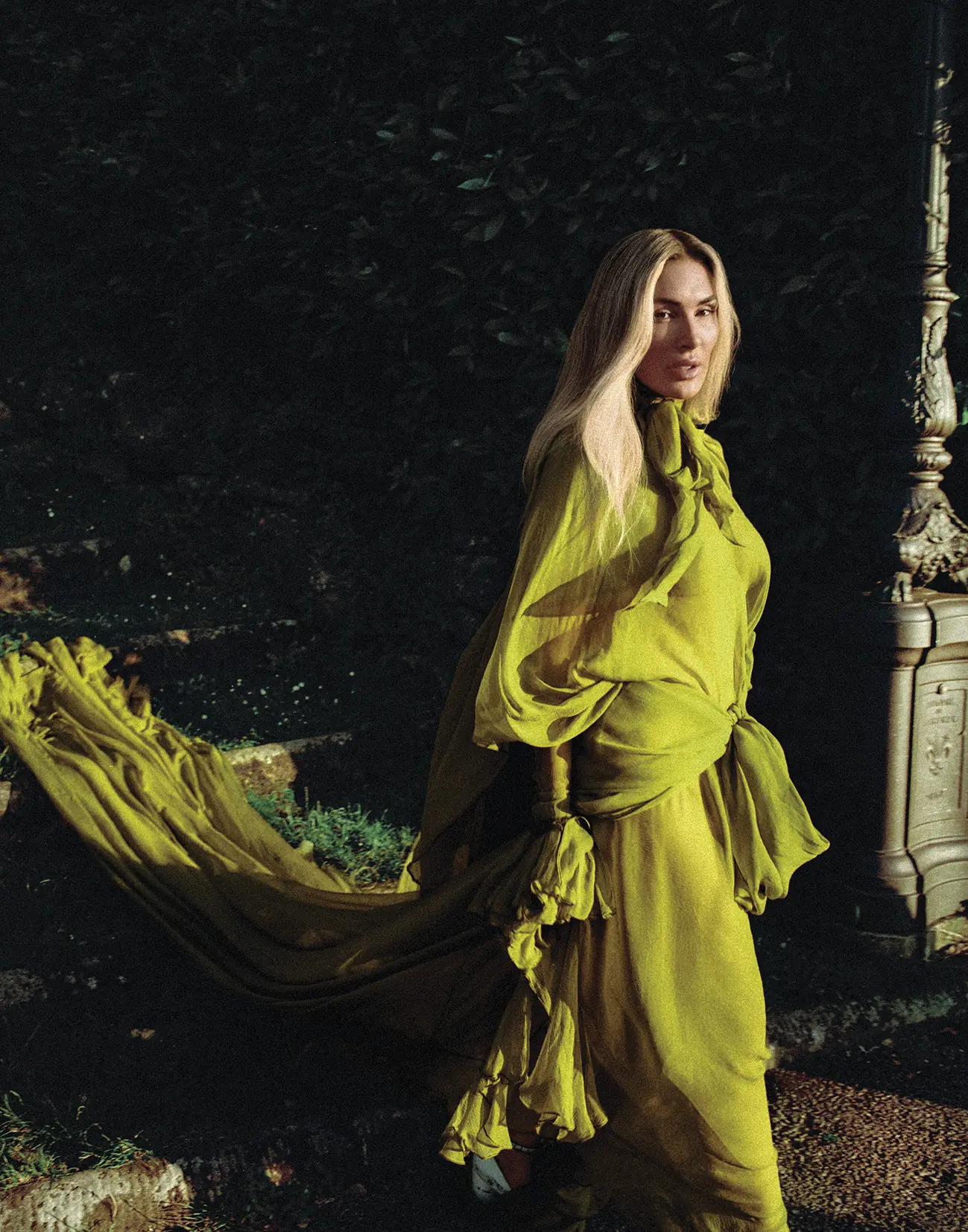 I nodded—because that definitely sounded like many women I know, strong above all. “You know, what it really means to be strong is always a question. To fight, that’s strength to me. To go through everything life brings and remain a fighter—with dignity. I learned that from my mother. She became a widow at under 30, with two daughters, and she was a true rose‑girl. She’s my eternal inspiration. She was always put together—never went to work without hair done and makeup, despite having so many problems. She was both mom and dad and did it all, always with her head held high. To me, that’s the very meaning of a Balkan woman.”