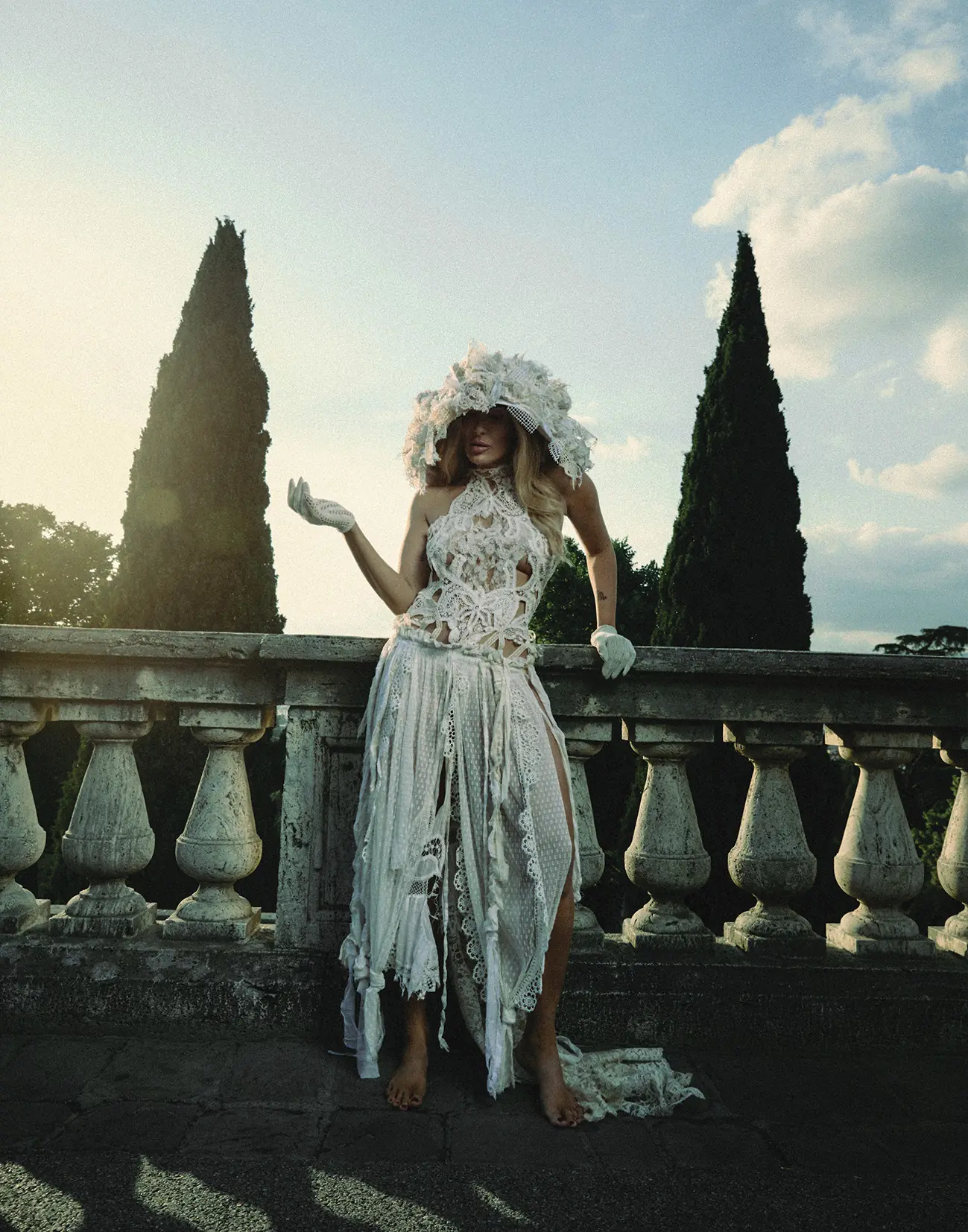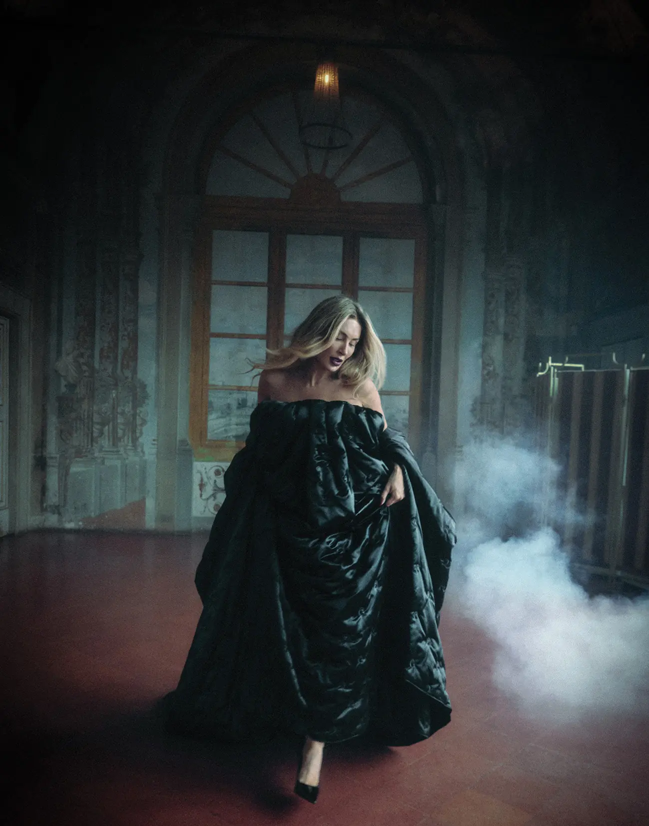 Fast forward to me sitting in a Renaissance villa in Florence, where we’re shooting this story. My favorite place all through the shoot was the chair in the Pandolfo Sacchi room, because it compresses everything. From that single point you can see, on one side, the entire ceiling where, by chance or design, the fresco narrates the whole myth of Chronos, god of time—and on the other, the myth of Psyche and Eros painted on the once‑grand wall of the next room. “I’m drawn to imperfections—they sometimes make a song perfect. I like it gentle, but I don’t like it perfect,” Senidah said through laughter. I thought about how strong and intentional the connection between these two myths is. In the search for Love (Eros), the Soul (Psyche) suffers Loneliness and Grief, while Venus’s servants, and Time, devour but also create. Gaze fixed on the frescoes, I wondered how many times we ourselves can be reborn. Do we come alive again when we finally get over someone? When do we begin to live our authentic selves? Or when we finally step onto the path we once feared? Or are these just tiny deaths and new beginnings? All of these, and so much more, are the story of Senidah.