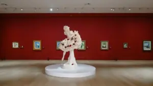 Takoj ob vstopu v muzej vas pričaka Pink Ballerina Jeffa Koonsa, skulptura, tako težka, da so morali pri projektiranju muzeja in proučevanju statike stavbe premakniti načrtovana vhodna vrata muzeja, izvem od kustosinje muzeja v sproščenem pogovoru med ogledom razstave. Poleg Koonsa pa razstava obsega umetniške dragulje, kot so Monet, Renoir, Cézanne, Munch, Picasso in Matisse; nato raziskuje sodobne umetnike, kot so Andy Warhol, Yayoi Kusama, David Hockney, Anselm Kiefer, že omenjeni Koons in Yoshitomo Nara; ter pionirske kitajske umetnike več generacij, med katerimi so Sanyu, Pan Yuliang, Wu Dayu, Wu Guanzhong, Zao Wou-Ki, Chu Teh-Chun, Chen Yifei in Zhang Xiaogang. Skoraj 50 najpomembnejših umetniških smeri je zajetih tukaj: impresionizem, postimpresionizem, kubizem, fovizem, ekspresionizem, dadaizem, nadrealizem, abstraktna umetnost, pop art in konceptualna umetnost, doda Boliang doživeto, medtem ko nas vodi skozi vse umetniške perspektive, posvečene – cvetju. In moram priznati, da me je cvetje in vsi njegovi izrazi spremljalo do konca mojega potovanja.
