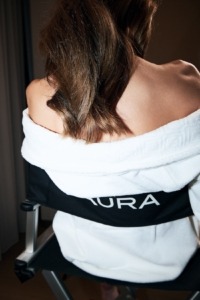 opisuje Danijela, medtem ko ji vizažistka AURA makeup znamke, nanaša tekoči puder Hydra Matte za brezhibno, žametno polt
