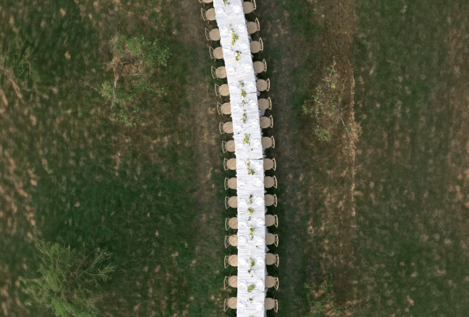 Impresivno dolg ukrivljen stol je bil osrednji detajl romantične poroke v Istri