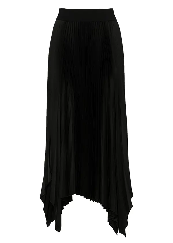 Ta kombinacija je zagotovo najboljša izhodiščna točka. Elegantna bela srajca v kombinaciji z dolgim črnim krilom, ki sicer lahko optično skrajša silhueto, zato jo vedno kombinirajmo s parom belih škornjev z debelim podplatom oziroma platformo.