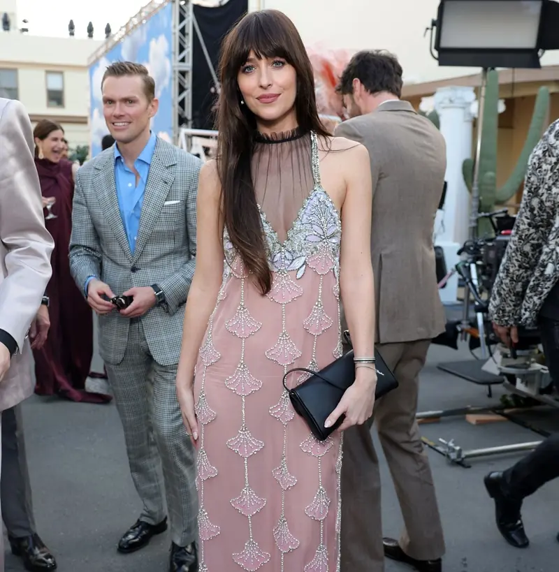 Igralka, znana po vlogah v trilogiji Fifty Shades in filmih, kot sta The Lost Daughter in The Materialists, je zablestela na rdeči preprogi Vogue World 2025: Hollywood dogodka v elegantni, zelo nežni dolgi obleki pudrasto rožnate barve z izvezenimi cvetličnimi detajli. Gre za kreacijo modne hiše Valentino iz kolekcije Fireflies za sezono pomlad/poletje 2026, ki jo je Alessandro Michele, sestavljeno iz 80 videzov, predstavil modnemu občinstvu na pariškem tednu mode v začetku oktobra. Da Johnson nosi Valentino na rdeči preprogi, kot je bila ta Vogue World dogodka, niti najmanj ne preseneča, saj je bila slavna igralka oktobra letos potrjena kot ena od globalnih ambasadork italijanske modne hiše. Dakota je svojo kombinacijo dopolnila le s preprosto črno torbico in diskretnim nakitom ter s pričesko in makeup-om, ki nista odvračala pozornosti od nežne rožnate obleke.