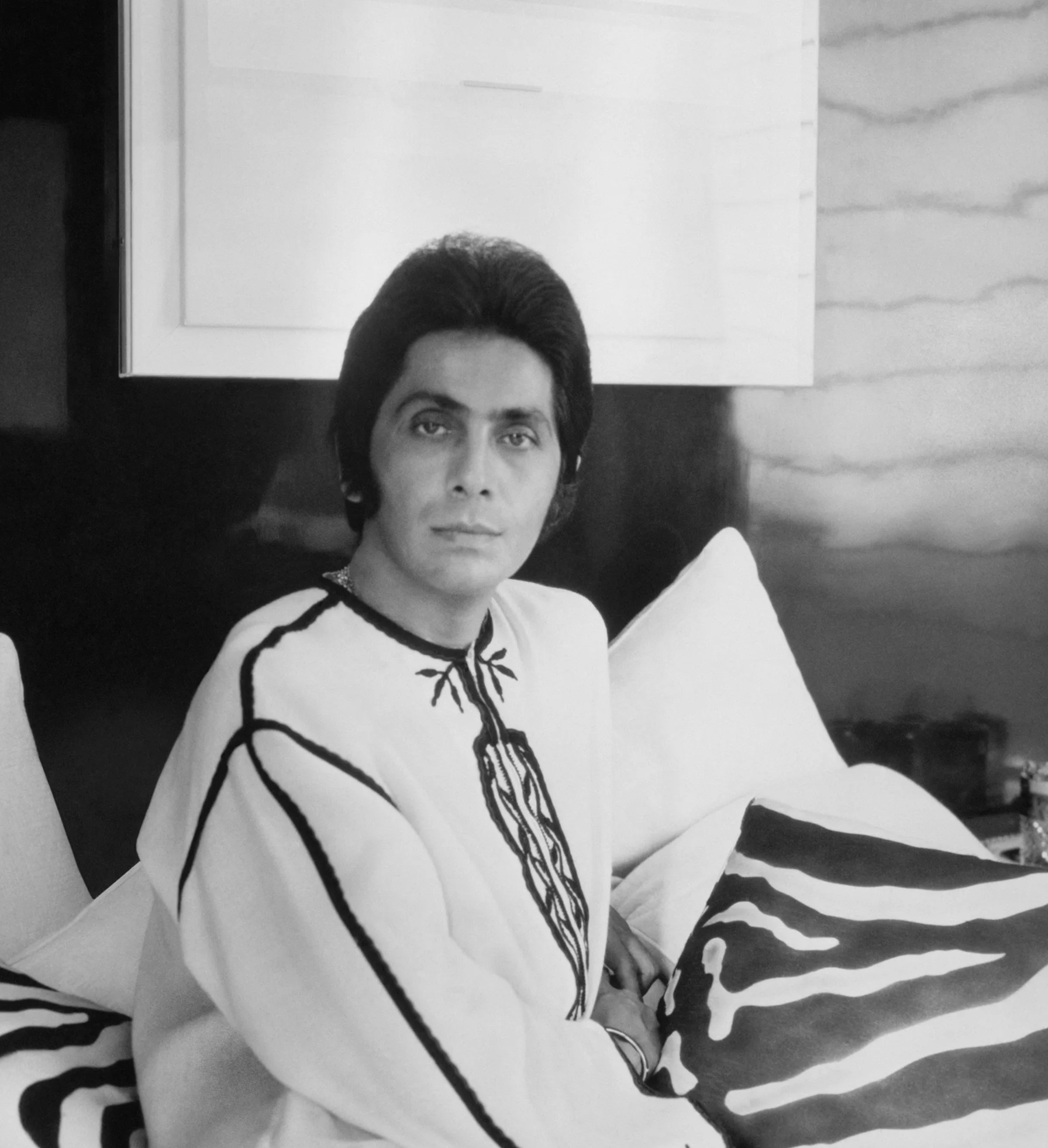 Fotografirano v stanovanju Cyja Twomblyja v Rimu, “Valentinova bela—tema, o kateri govori vsa Evropa. Čistost in izjemnost njegovih ostrih belih tonov, njegovih čipkastih belih kosov, njegovih mehkih in kremastih belin, vse prikazano skupaj, belo na belem. In vse, triumfi,” je poročal Vogue, “za petintridesetletnega oblikovalca, ki, z izlivanjem vse te lepote, romantike in popolnosti, postaja idol mladih, novi simbol sodobnega luksuza….” Fotografiral Henry Clarke, Vogue, 15. marec 1968.