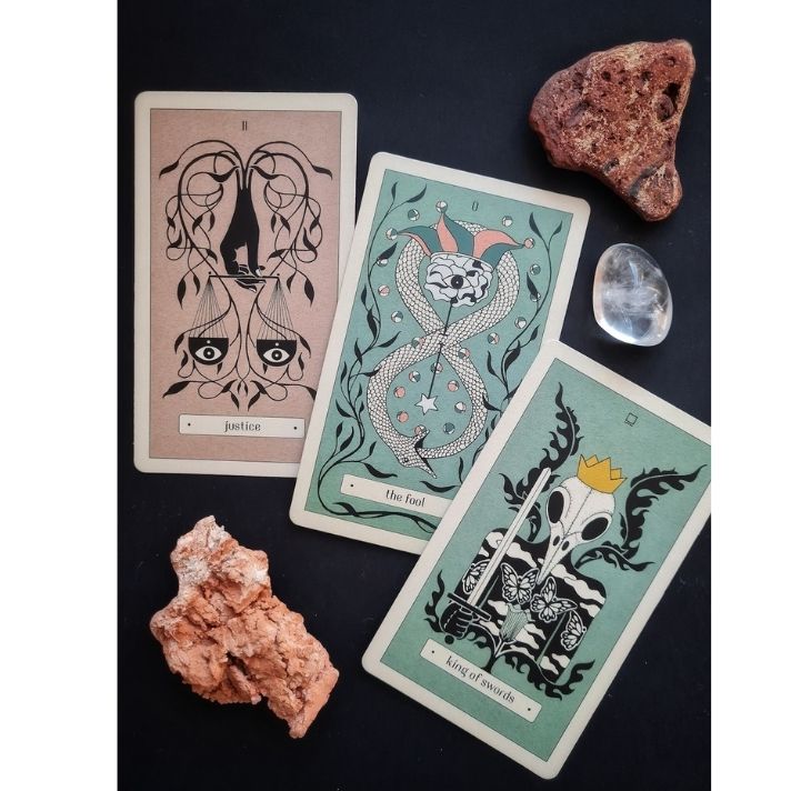 Vaš kompas ta mesec je karta Pravice, ki pomeni jasnost, resnico in sprejemanje odločitev, ki bodo imele dolgoročen vpliv na vaše življenje. Se počutite pripravljeni stopiti v nov cikel? Ker vas Norec vabi prav k temu – da si drznete in upate, četudi ne veste točno, kam greste. Norec predstavlja humor, zato se vsakdanjih situacij in odnosov lotevajte z mero humorja. Tukaj pa je tudi Kralj mečev, ki vam bo zašepetal: združite to igrivost z logiko. Če boste oktobra našli ravnovesje med svobodo in odgovornostjo, bodo vaše odločitve ne le pravilne – ampak tudi osvobajajoče.