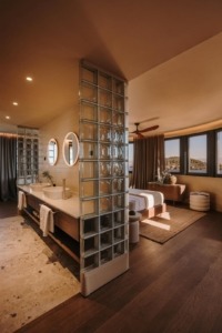 Pravzaprav je vse tukaj nekako nežno, s peščenimi odtenki, počasno, kot da bi želeli za vedno ustaviti čas in opazovati sončni zahod. Grafični elementi še dodatno poudarijo zgodbo. Po celotni notranjosti se pojavljajo prilagojeni odtisi, ki jih navdihuje gibanje valov Jadranskega morja in diskretno povezujejo prostor z morskim okoljem.