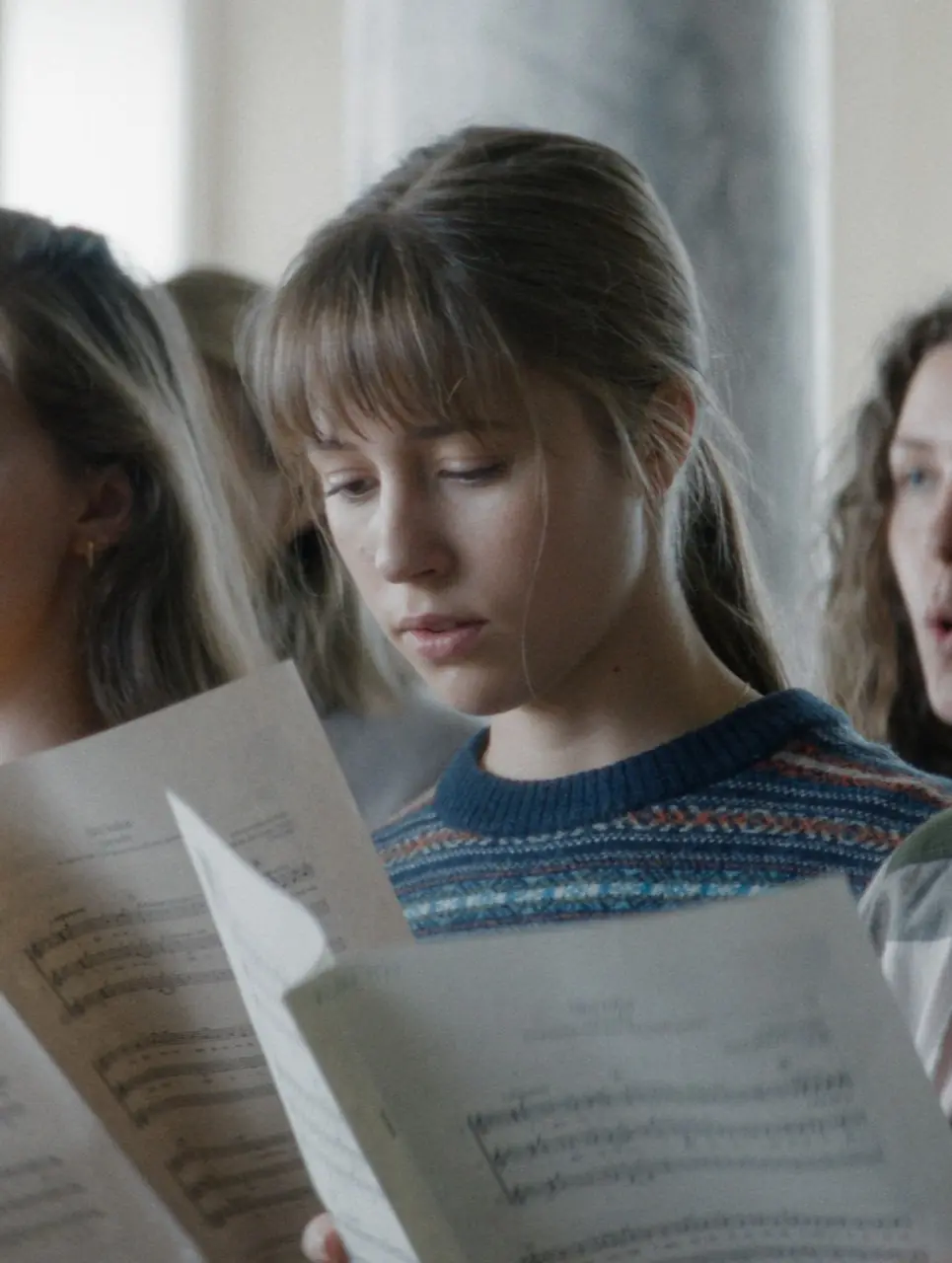 Lucija je tiha in umaknjena, toda v zelo kratkem času, obkrožena z dekleti svoje starosti in končno izpuščena iz zlate kletke, v kateri je bila vzgojena, doživi prebujanje svoje spolnosti. Tukaj jo nedvomno vodi njeno prijateljstvo z Anno-Marijo (Mina Schweiger), dekletom, s katerim se hitro spoprijatelji in ki Luciji brez oklevanja postavlja zapletena, “žgečkljiva” vprašanja, tista na katera ne more ali noče odgovoriti. Čeprav dneve preživljata s petjem – in opazovanjem na skrivaj v napol oblečene delavce, ki urejajo samostanski atrij – dekleti preživljata noči z deljenjem skrivnosti in, povsem naravno, igrenjem iger, kot je resnica ali izziv. Čeprav je ambient filma nenavadno specifičen in meni osebno neznan, film uspe ujeti samo bistvo deklištva, neizrečene resnice in izkušnje, ki jim morda niti ne pripisujemo pomena, ko govorimo o odraščanju, in ki so v svojem bistvu univerzalne. Verjamem, da so celo zelo glasna in samozavestna dekleta nekoč imela svojo Anno-Marijo, prijateljico, ki jih je potisnila iz cone udobja. In tako kot Lucija smo se vsi vsaj enkrat spraševali, ali zaostajamo za vrstniki.