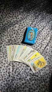 Podobno lahko energijo kart “očistite” pred vsakim branjem ali po posebej čustvenem branju. To lahko storite tako, da karte povlečete skozi dim žajblja ali drugega zelišča, jih položite v vibrirajočo zvočno posodo ali jih postavite ob svoje najljubše kristale. Lahko jih tudi “okopate” v svetlobi polne lune ali jih za kratek čas izpostavite sončni svetlobi. Še en preprost ritual čiščenja je, da pred mešanjem trikrat nežno potrkate s členki po vrhu kompleta.