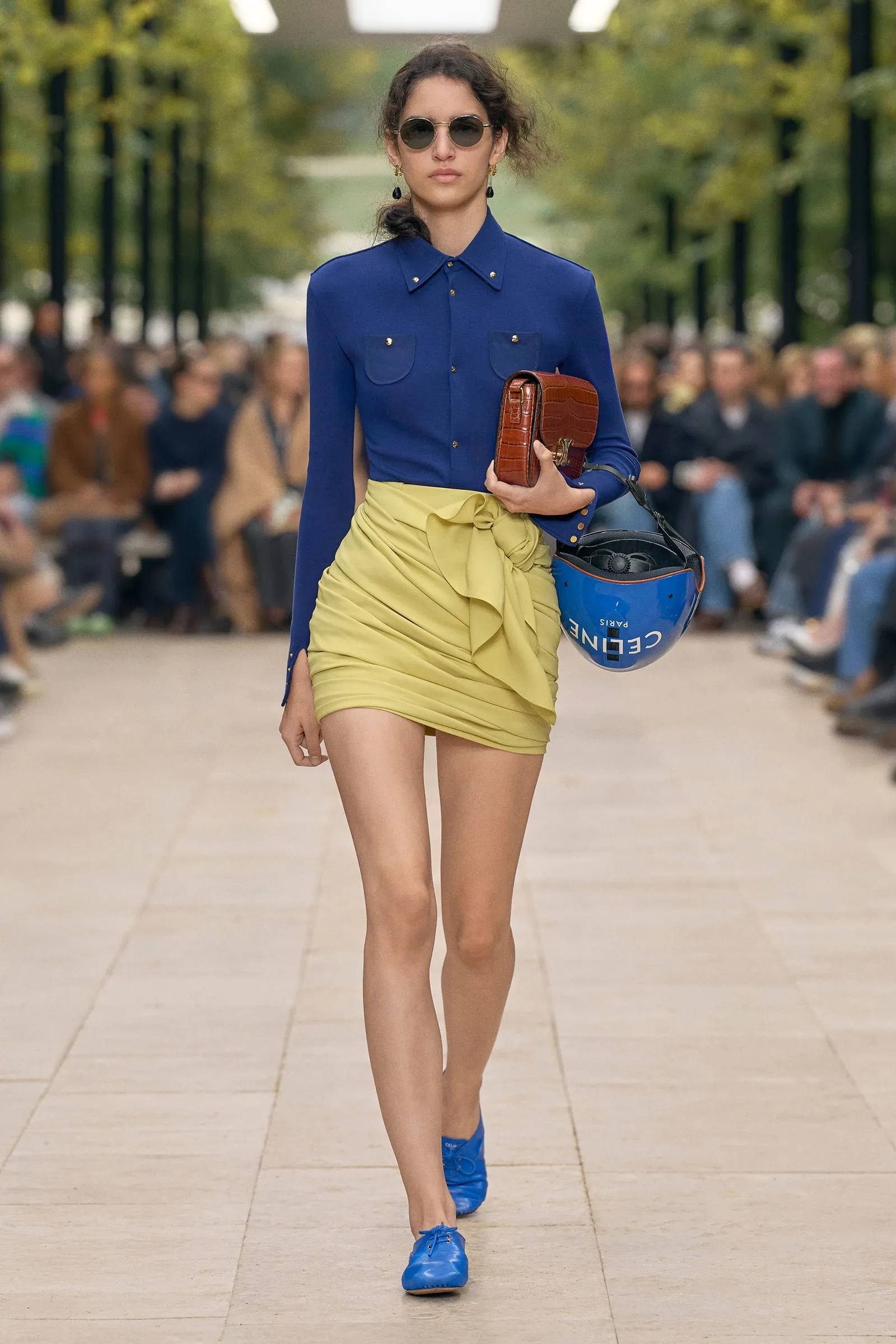 Pri Celine, v drugi kolekciji Michaela Riderja, so pravila enako jasna: rumeno mini krilo, pletena modra polo majica, čevlji in kolesarska čelada v isti paleti. Kar se tiče klasične poletne cvetlične obleke, gre za mini obleko, v stilu drsalk in okrašene z neštetimi cvetovi, trio barv pa ji daje skoraj 3D učinek.