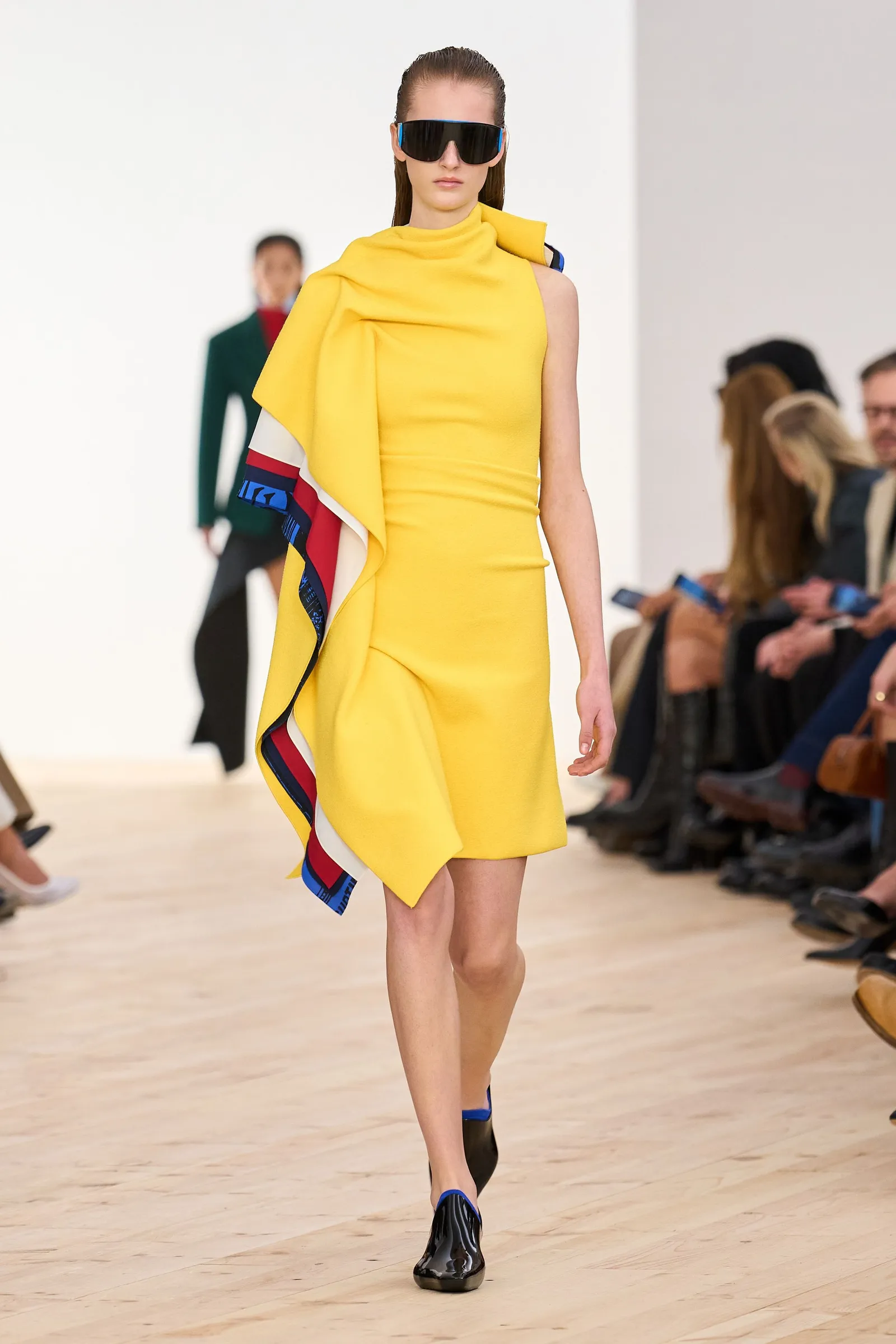 Pri znamki Loewe so stvari v prvi kolekciji Jacka McCollougha in Lazarja Hernandeza zelo preproste. Obstajata dve možnosti. Prva je layering: rumen puli pod rdečim topom in modro srajco. Preprosto, učinkovito, a hkrati izjemno modno ozaveščeno, oblačenje v plasteh ni več rezervirano samo za zimo! Druga možnost je za bolj drzne – šal obleka v teh barvah je prav tako odlična izbira.