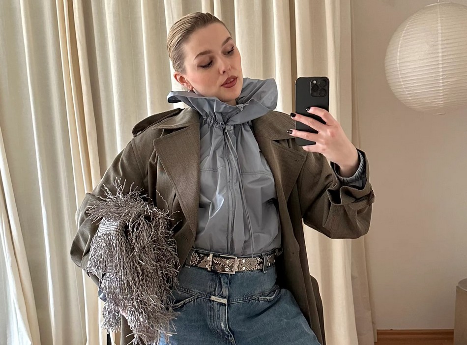 V celoten look sem vključila tudi twisted Wire Belt iz Y/Projecta (rip!) in obleko, zavezano v vozel, ki se ritmično gibljeta skupaj s kavbojkami. In presenečenje, zahvaljujoč tem ekstravagantnim detajlom, se ta stil kavbojk odlično obnese v kombinaciji z elegantnim plaščem, tudi za večerne priložnosti.
