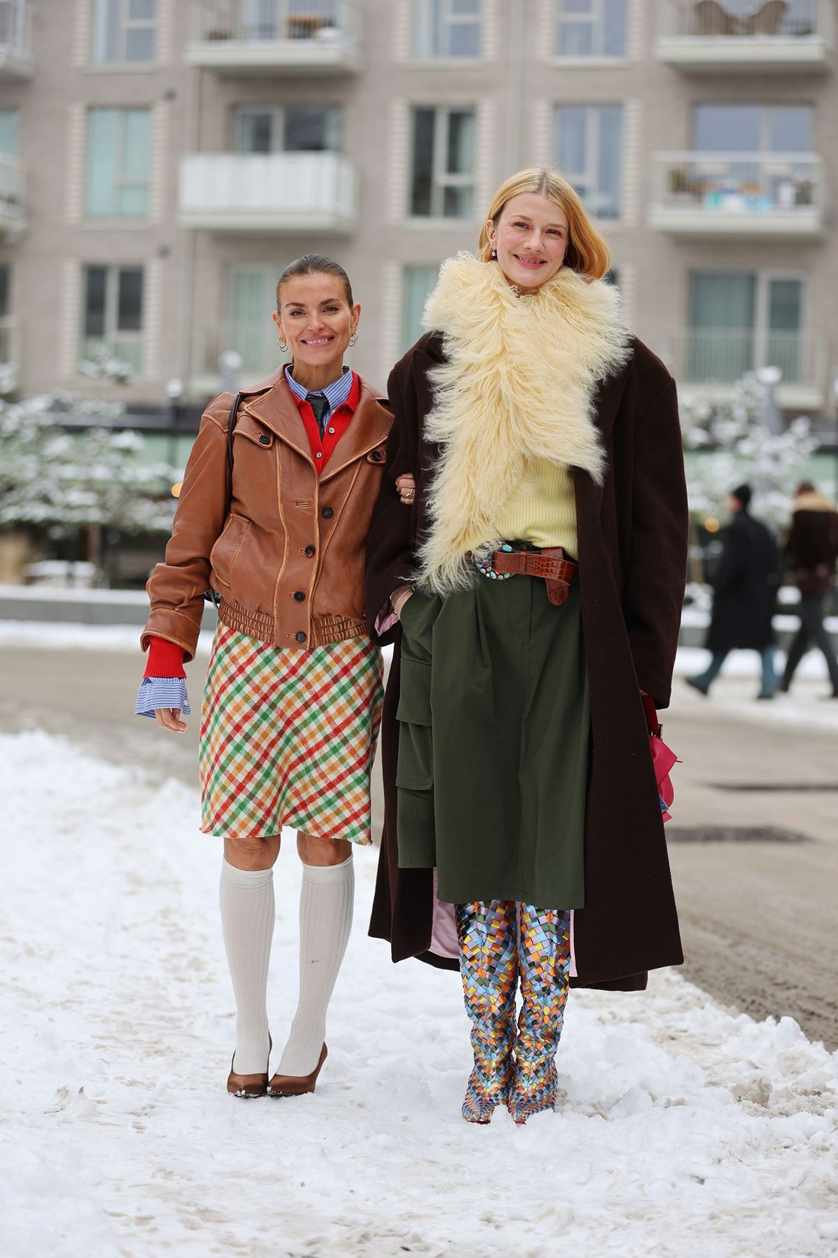 Večplastno oblačenje in eklektični stili so prepoznavni podpis Kopenhagna, trendseterke pa so bile to sezono še posebej navdušene nad pastelnimi odtenki (ki so v kombinaciji s snežno belo videti čudovito), oversized bundami (priznajemo, stylish in praktične) in vsemi možnimi krznenimi dodatki – od kučmic do ovratnikov in krznenih štol. Broške, kot najbolj priljubljen dodatek zadnjih sezon, so kraljevale tudi na street style sceni Kopenhagna, najpogosteje v znameniti maksimalistični maniri, ki jo mesto ceni, pridružil pa se jim je še vseprisotni karirani vzorec, ki je zasedel ulice vseh večjih modnih metropol.