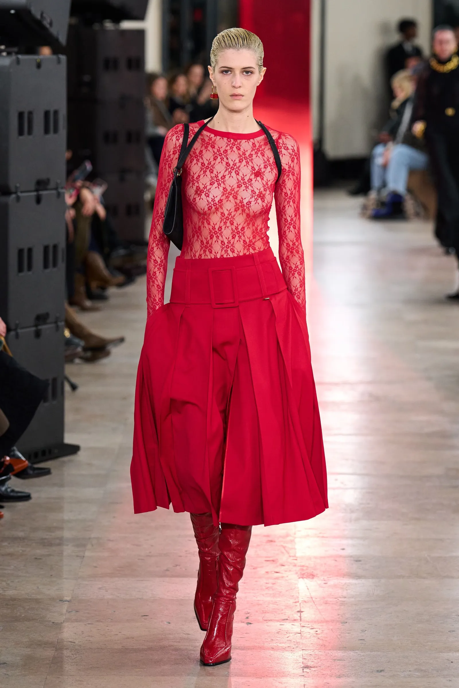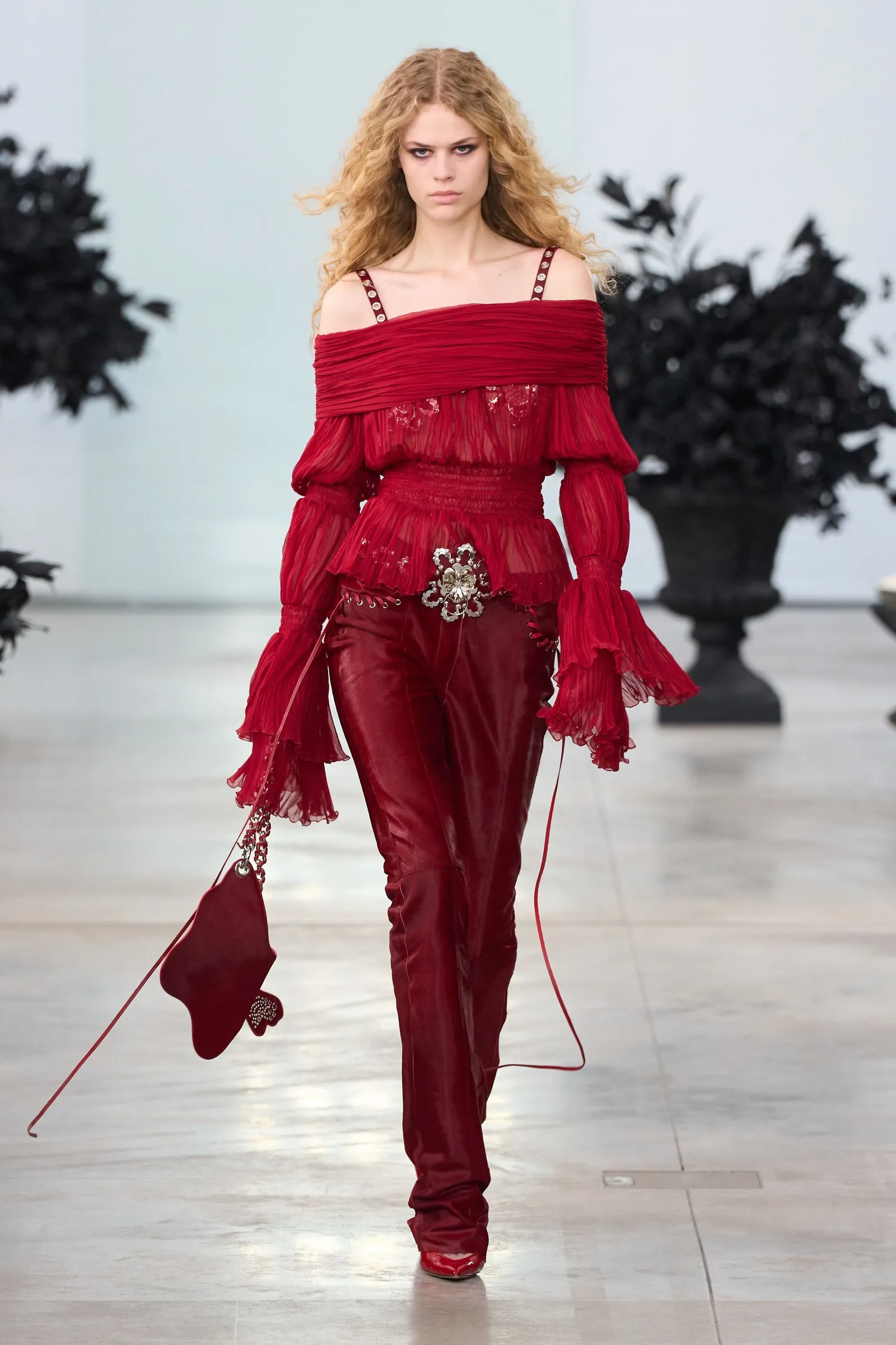 Rdeče bluze prevladujejo to sezono. Od odtenkov krvavo rdeče in svetlo škrlatne do elegantne bordo barve jih nosimo za vse priložnosti. Blumarine je predstavil boho modele s spuščenimi rameni, Patou pa romantične čipkaste bluze z visokim ovratnikom in dolgimi rokavi, ki so kot nalašč za enobarvne videze.