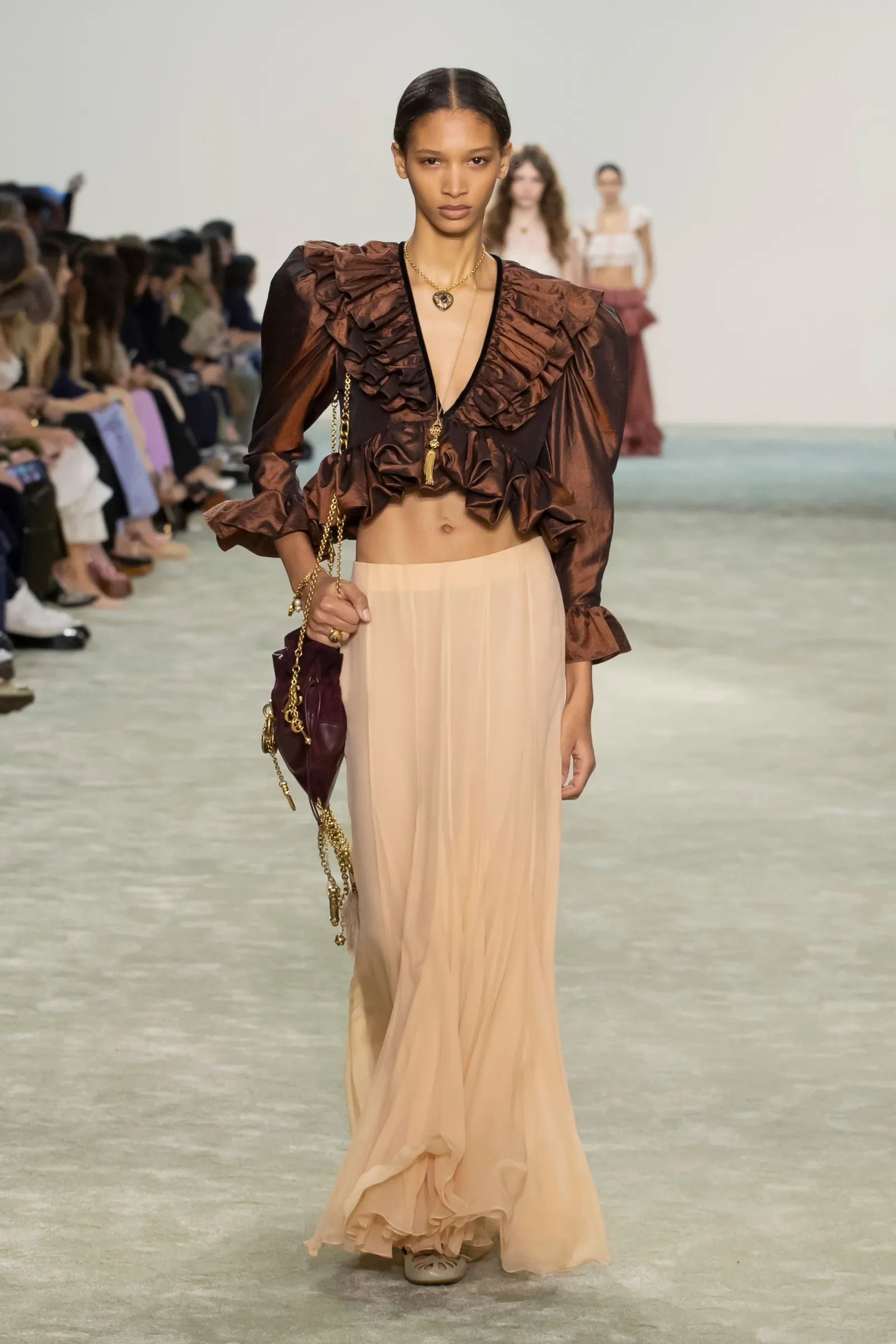 Nenazadnje se bodo dame, ki ljubijo glamur in dramo, zaljubile v kovinske in zlate bluze – najsvetlejše kose sezone. Na reviji Ulle Johnson so bili predstavljeni modeli brez naramnic z napihnjenimi rokavi, Versace pa je oživil kultno svilnato bluzo z baročnim potiskom iz 90. let.