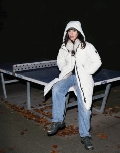 Saša nosi T-shirt Nike Pro Rash Guard, jopo in plašč, vse Edited, Hlače Bershka, Čevlji Salomon Lab sneakers, Torba spominek iz Južne Koreje