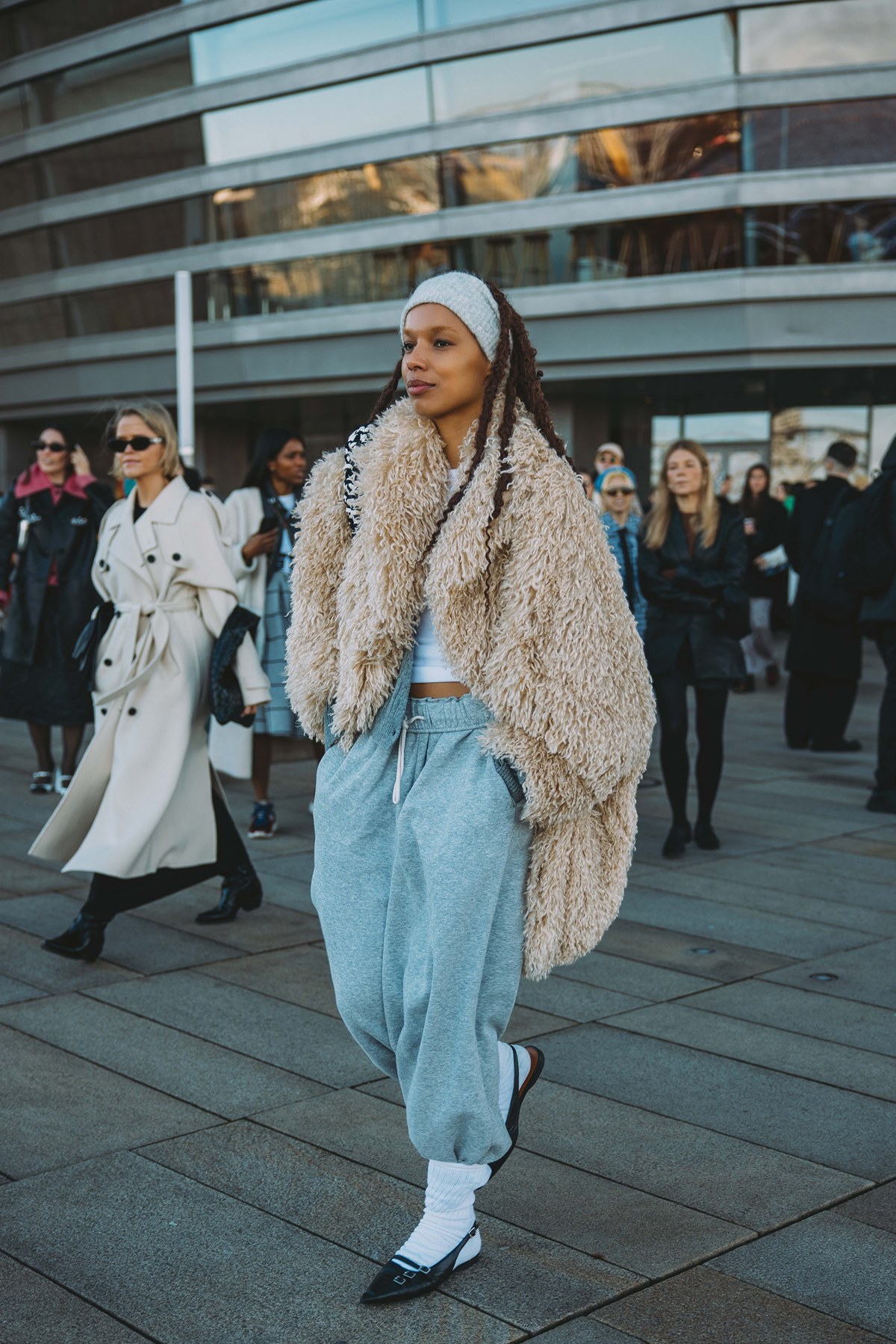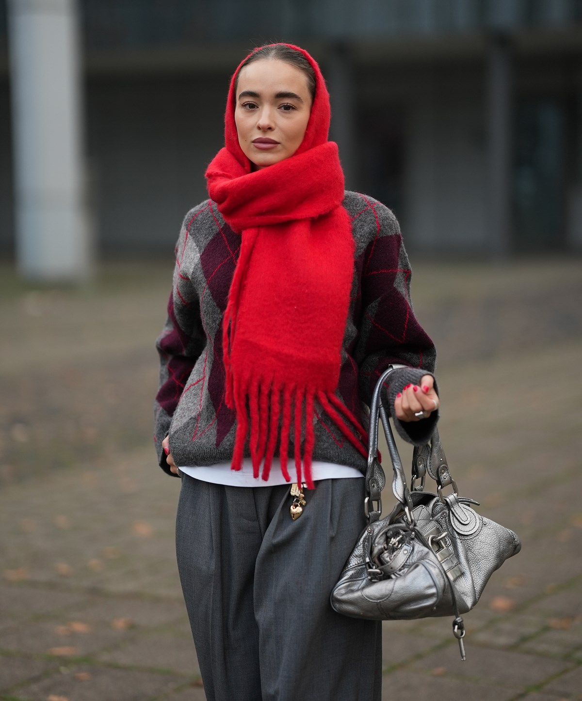 Šal, ovit okoli glave, ali pleten šal je chic način za zamenjavo “navadne” volnene kape. To zimsko sezono me še posebej navdušujejo outfiti s pletenimi šali, ki so tako veliki, da pokrivajo tako hrbet kot tudi ramena – še posebej, če so v svetlem odtenku ali okrašeni z zanimivimi vzorci, ki v trenutku povzdignejo (pogosto sive in nekoliko dolgočasne) zimske stajlinge. Zanimivo je tudi, da se lahko poigrate z načinom zavezovanja in tako ustvarite povsem drugačen vtis – pod brado v babushka stilu, pod lasmi ali nad, če vam je všeč sproščen boemski vibe.