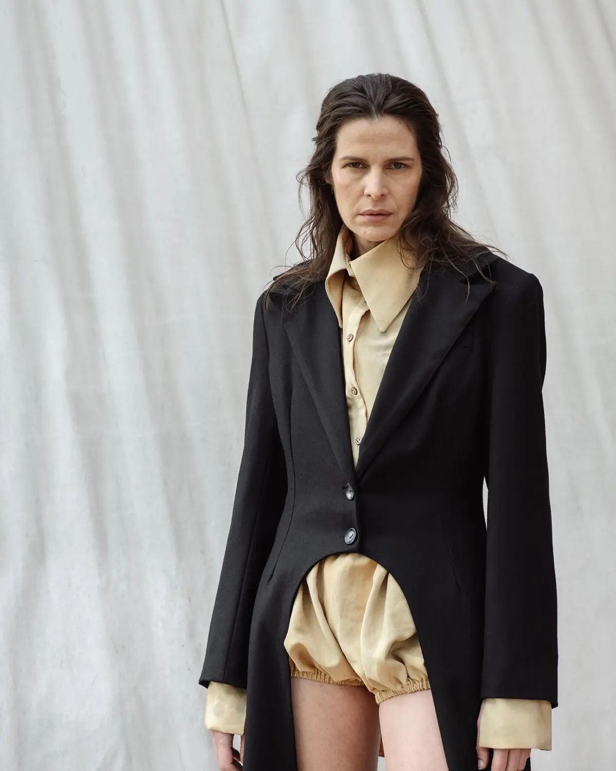 Skozi kolekcijo se vleče močan kontrast natlačenega in polnega, ki deluje nekoliko nenavadno v primerjavi s preprostimi, mirnimi površinami brez teksture. Ta kontrast ni prisoten le vizualno, temveč tudi v vtisu – združuje tradicionalno v kroju z modernim v detajlih, praktično z drugačnim. Čeprav v kolekciji prevladujejo “ne-barve”, kot sta črna in bela, ter zemeljski toni bež in rjavih odtenkov, kosi v živih rožnatih in rumenih tonih prinašajo odmerek optimizma in vedrino, ki se zlahka zlije v kateri koli letni čas.