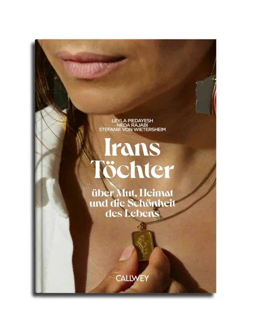 To besedilo je odlomek iz knjige “Hčere Irana”. V njem avtorica Stefanie von Wietersheim in fotografinja Neda Rajabi predstavljata 20 žensk v osebnih portretih, med katerimi so denimo galeristka Anahita Sadighi, DJ-ka Paramida in voditeljica Natali Amiri. Urednica je modna oblikovalka Leyla Piedayesh, založnik pa Callwey.