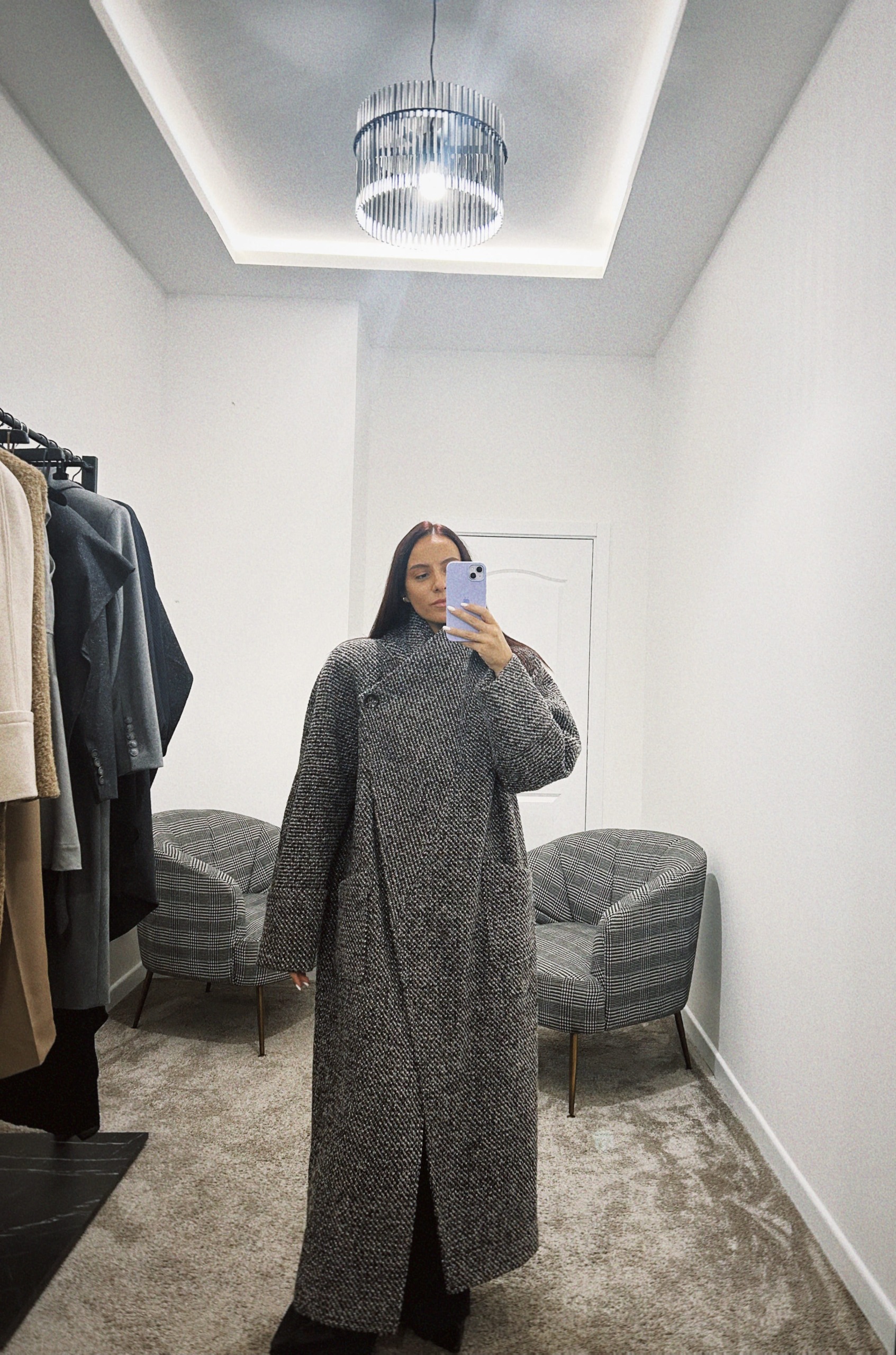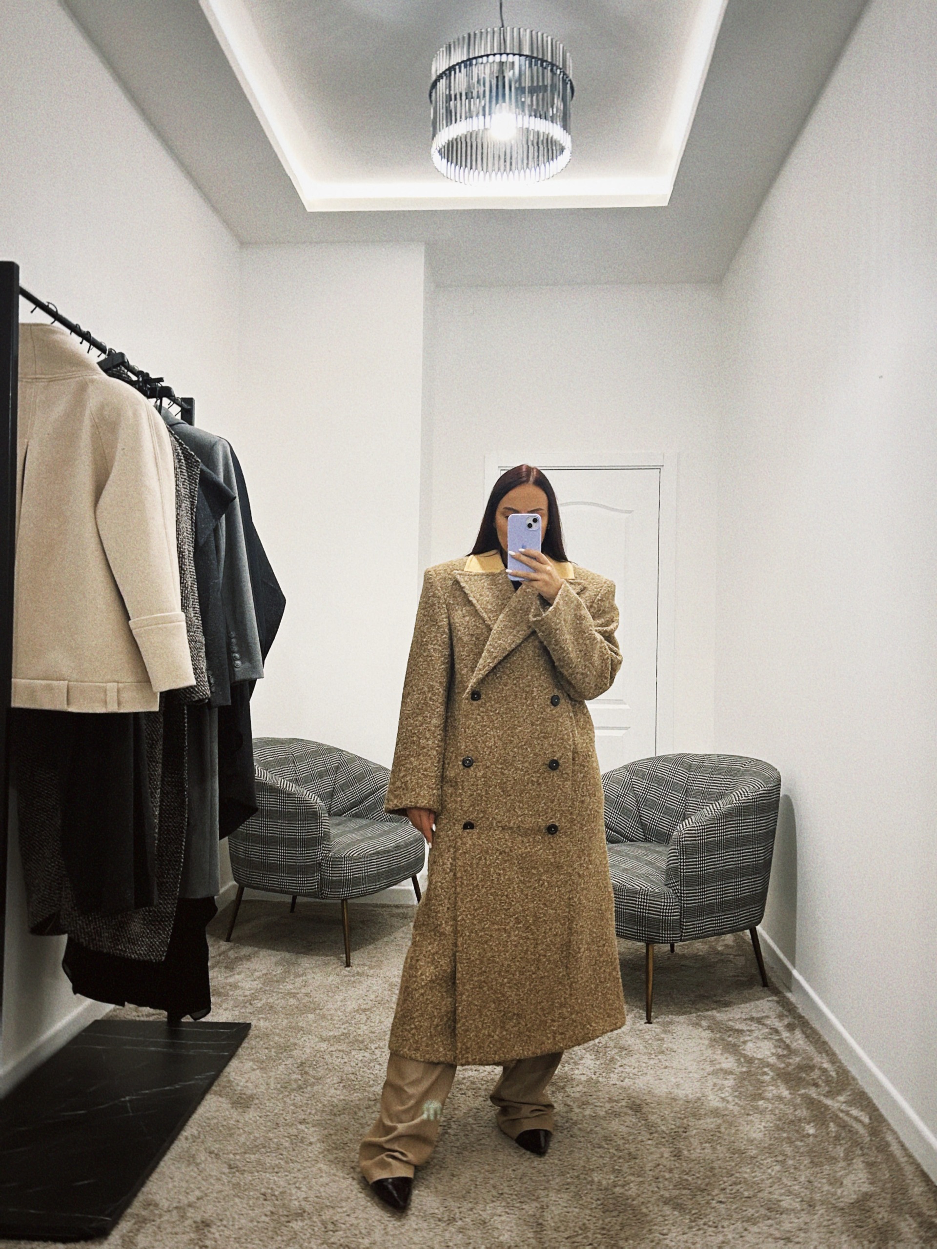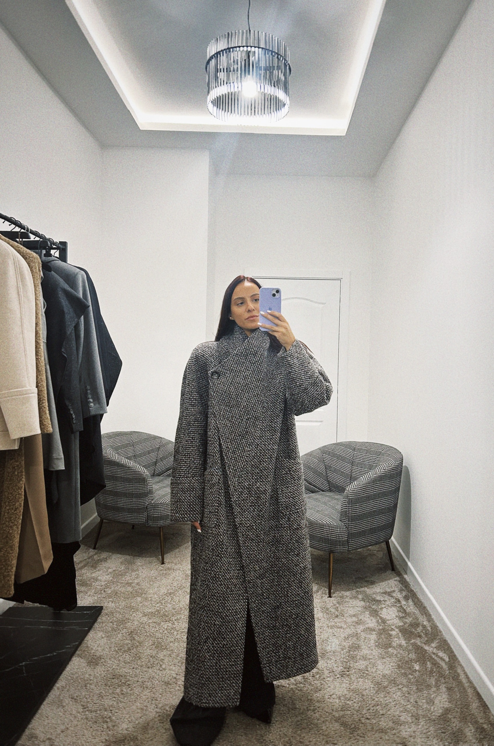 Začnem z statement kosi in s tistim po čem je Mom’s Pants prepoznavna – volneni plašči. Nekje med bež Eternal modelom in dolgim asimetričnim, s katerim se je match zgodil ob prvem dotiku (in pogledu), vprašam Jeleno, od katerega principa nikoli ne odstopa pri oblikovanju. Nikoli ne odstopam od dejstva, da morajo biti močni v svoji preprostosti. Verjamem, da je manj več in da so elegantne linije in čiste oblike tisto, kar naredi plašč poseben. Visokokakovostni materiali in pozornost do detajlov omogočajo, da so vsestranski, da se zlahka kombinirajo z različnimi kosi iz garderobe. Ta preprostost prinaša moč: plašči postajajo statement kosi, ki lahko preoblikujejo vsak outfit, hkrati pa ostanejo subtilni. Zato se trudim, da vsak plašč v kolekciji ni le modna izbira, temveč tudi izraz osebne moči in stila vsake ženske, ki ga nosi. In to je pravi opis občutka med nošenjem – neustavljivost na vsakem koraku.