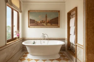 Airelles Palladio Venezia je nov luksuzni hotel v palači ob Velikem kanalu v srcu Benetk. Znana hotelska skupina iz Francije, lastnica edinega hotela znotraj kompleksa palače Versailles, zdaj prihaja v očarljive Benetke. Hotel sestavljajo tri zgodovinske stavbe, cerkev in obsežni vrtovi ter ponuja 45 sob, tri restavracije, dva bara, tri bazene in otroški klub. Sobe so opremljene v toplih tonih s teksturiranimi tkaninami in steklenimi detajli, ki odsevajo svetlobo kanalov, medtem ko umetniški elementi in vintage kosi vnašajo osebni pečat ter povezanost z beneško kulturo.