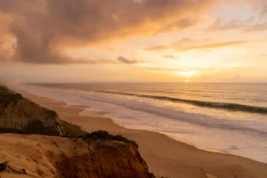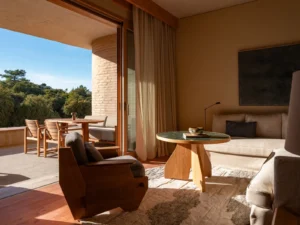 Idilična plaža, vsi odtenki peska in toplega lesa, veliko portugalskega sonca in dobili ste še eno povabilo v raj – hotel Na Praia. Gre za kraj, kjer se mediteranski ritem in sproščeno vzdušje srečata s sodobnim dizajnom, od zračnih interierjev in naravnih materialov do teras s pogledom na morje in prijetnih skupnih prostorov. Eden najzanimivejših detajlov je kombinacija ročno izdelanih keramičnih ploščic v lounge prostoru in svetilk iz recikliranega stekla, ki ustvarjajo subtilen kontrast med Mediteranom in mojstrstvom izdelave. Popoln kraj za pobeg.