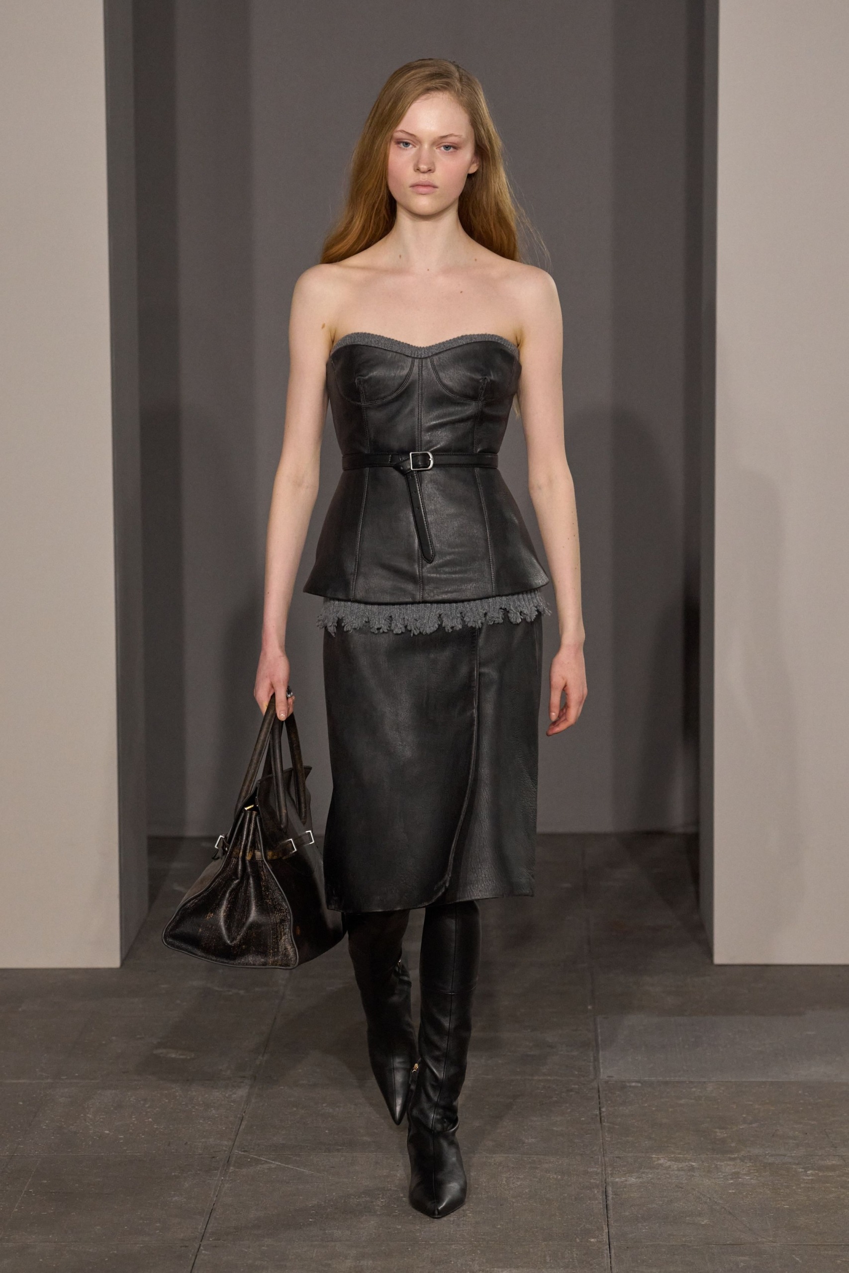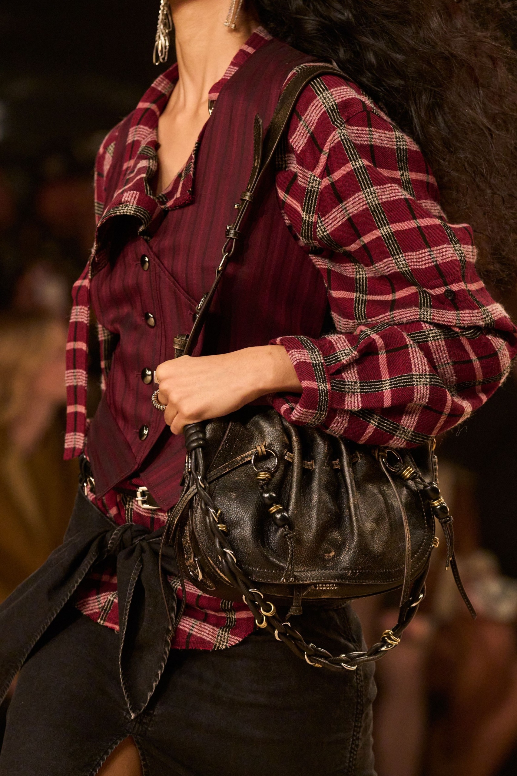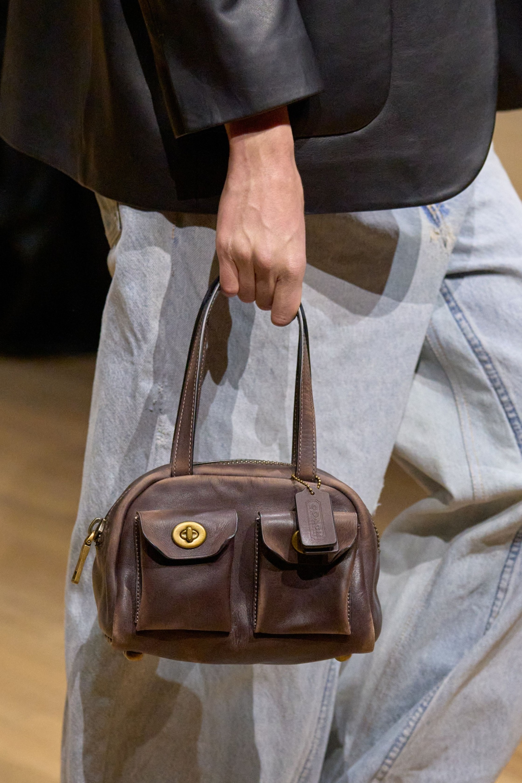Kot pričakovano je trend našel svoje mesto na modnih pistah sezone jesen/zima 2025, kjer so oblikovalci predstavili drzne in prefinjene različice. V New Yorku je Simkhai poudaril videz nošenega usnja in torbe kombiniral z enako spranimi oblačili, v Parizu je Miu Miu ponudil oglato, uglajeno silhueto, medtem ko je Isabel Marant ostala zvesta svojemu bohemskemu duhu z mehko, sproščeno obliko torb.