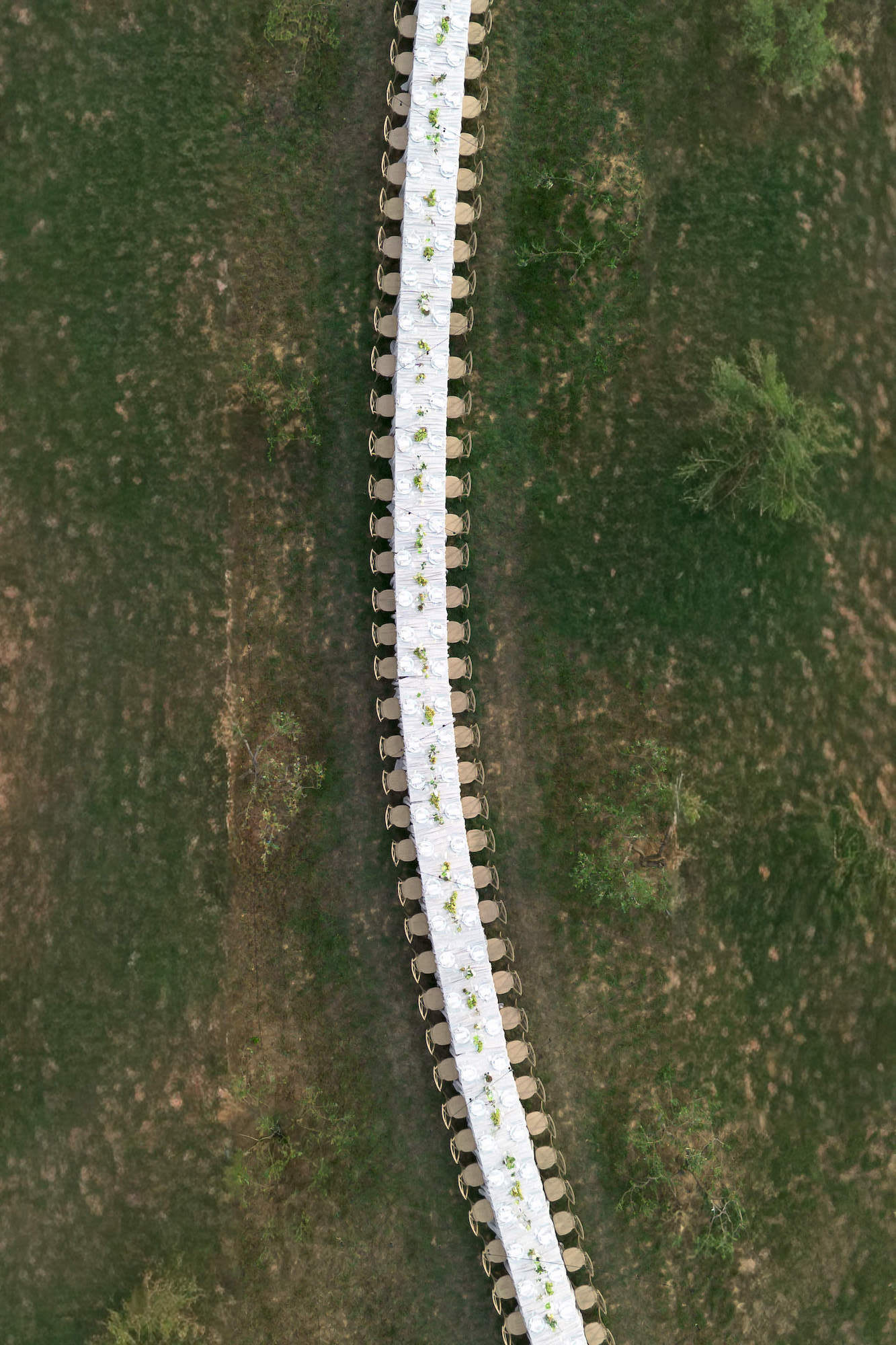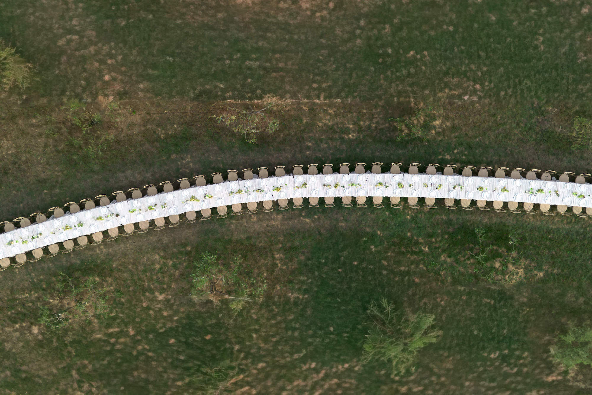 Zemeljski toni, naravni tekstili, odtenki sončnega zahoda, oljke in pogled proti obzorju so postali ključne reference, Antun iz Cvit Happens pa poudarja, da je bila Istra osrednja inspiracija za ustvarjanje toplega in naravnega ambienta. “Vsaka aranžmajska celota je sledila duhu prostora, barv in trenutka.” Poroka je potekala v očarljivem istrskem kraju Oprtalj, na posestvu Aidanovega očeta, kjer je njegova luksuzna vila umeščena na kaskadne terase, obdane z oljčniki. “Vsaka terasa je imela svojo vlogo v zgodbi, ki se je razpletala v popolnem ritmu: na srednji terasi se je ob saksofonistu začelo druženje z dobrodošlico, na najnižji terasi med oljkami in pod odprtim nebom pa se je odvijal prizor, ki je postal zaščitni znak celotnega praznovanja.” Najbolj impresiven element večera je bil 40 metrov dolg ukrivljen stol, oblikovan tako, da je sledil naravni poti terena.