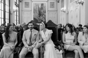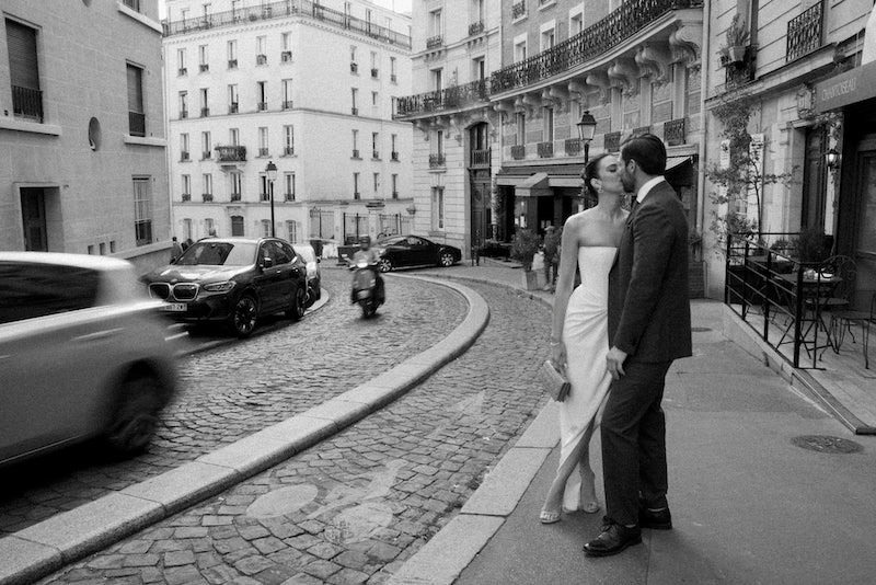 Mesto je že generacije del Andyjine družinske zgodbe: tja sta se zatekla njena stara starša po begu pred špansko državljansko vojno, tam je preživela otroške poletne počitnice s svojo francosko družino in tam sta se zaljubila. “Zato sva najin poročni dan zasnovala okoli resničnih krajev in ritualov iz najinih življenj tam: slovesnosti v mestni hiši (mairie) v okrožju, kjer sva nekoč živela, šampanjec v najinem najljubšem bistroju v soseski, rože, kupljene tisto jutro v cvetličarni za vogalom, in obrok v restavraciji, ki nama je bila še posebej pomembna. Ideje so prišle zlahka, a njihova uresničitev je bila povsem druga zgodba,” Andrea pove za Vogue Adria in poudari, da je bilo zanju pomembno, da sta ohranila vse osebno in utemeljeno v Parizu, ki ga resnično poznata, “in ne v njegovi razgledni različici”.