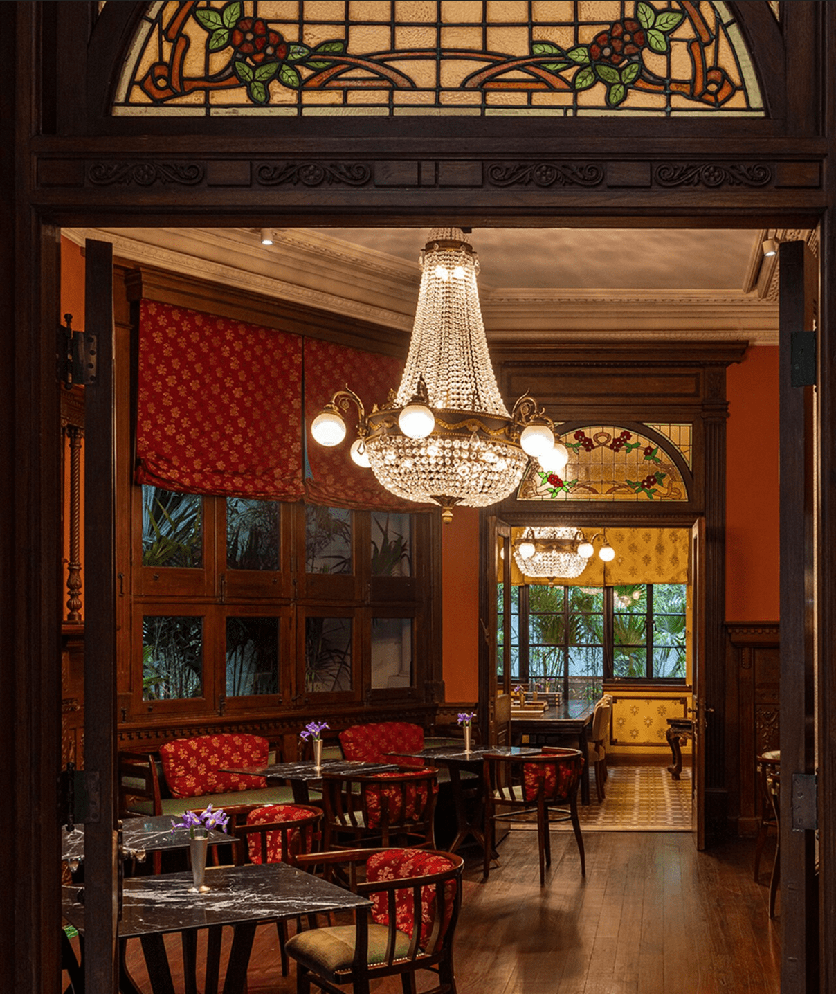 Vsaka sobana v vili; od Pastry Shopa in The Caffèa do knjižnice in intimne dining sobe, je zasnovana kot samostojno vizualno poglavje, kjer se italijanski in šanghajski vplivi srečujejo kot kadri iz Wongovih filmov. Meni osebno najbolj očarljiv, kot da bi dejansko zakorakala v njegov legendarni film In the Mood for Love, ki ga obožujem.