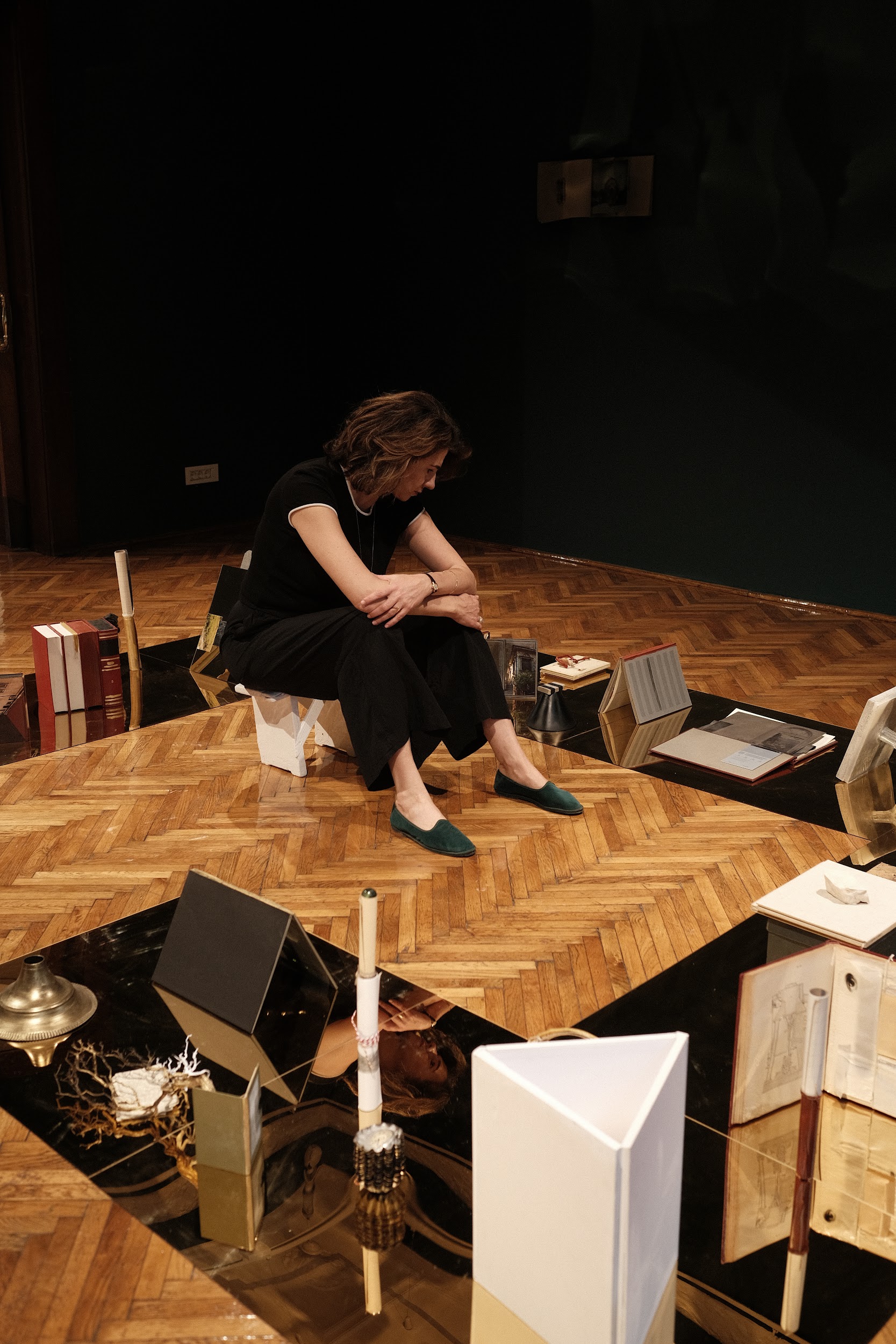“Galerija, ki se nahaja v Reichlovi palači, zgrajena v začetku prejšnjega stoletja, vključuje impozanten ambient, ki ga sestavlja več velikih dvoran v izrazitem secesijskem duhu, pri čemer arhitektura na nek način postane aktivna udeleženka v umetniškem procesu. Zato sem o razstavi razmišljala v povezavi s samim razstavnim prostorom, ob upoštevanju njegovih arhitekturnih, ambientalnih in časovnih plasti. Vsaka od devetih enot predstavlja avtonomno intervencijo, hkrati pa je del enotnega, notranje povezanega sistema. Gradim več kiparskih kompozicij, polnih simbolov, pomenov in intimnih zgodb, v odnosu do samega predmeta in strukture. Tam so, da pokažejo na medprostor, to je fizionomijo samega koncepta heterotopije.”