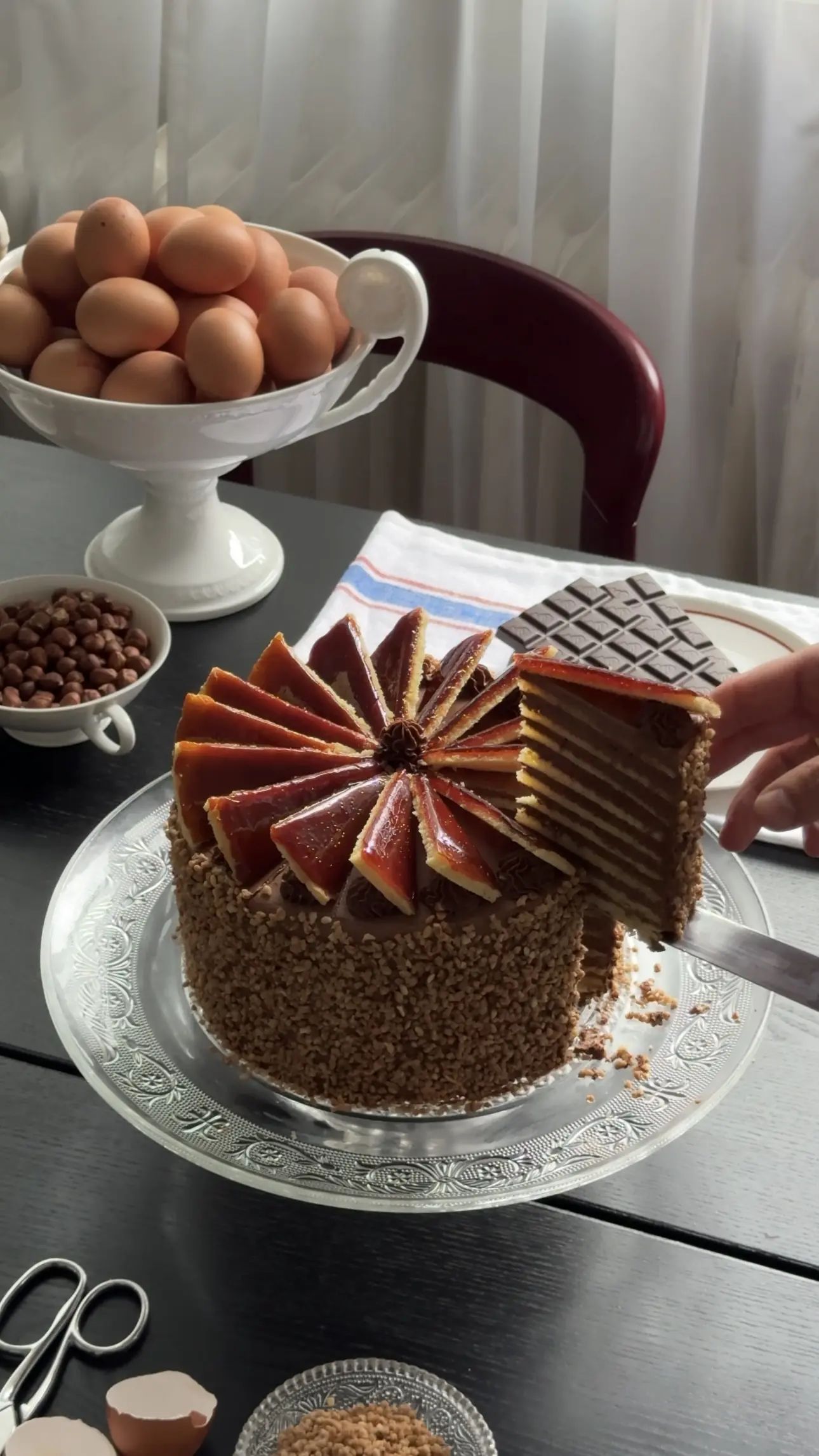 Če bi me v otroštvu vprašali, katera je moja najljubša sladica, bi vam kot iz topa izstrelila – doboš (skupaj s tistim šelestečim š, zaradi česar bo ime te torte za vedno karikirano v moji družini). Namreč, poleg mojega rojstnega dne so novoletni prazniki tradicionalno zaznamovani s to madžarsko sladico z zračno skorjo, polnjeno s čokoladno kremo in karamelno glazuro, kjer je vsaka sestavina oboževana posebej in kot celota. Včasih pa je treba izboljšati tudi dobro preizkušene okuse, še posebej po letih in desetletjih uživanja, zato sem se letos odločil pokukati v knjigo receptov one & only Ivana Lončarja – arhitekta z naslovom v Berlinu, ki nas nenehno navdušuje s svojimi kulinaričnimi in estetskimi sposobnostmi na družbenih omrežjih. Najpogosteje ne spreminjam recepta, ker je za potovanje skozi čas potreben ta specifičen okus, a vedno spremenim obliko ali okrasje, da sladica dobi nov duh in se prilagodi mizi, kot sem si predstavljal, mi Ivan pove že na samem začetku.