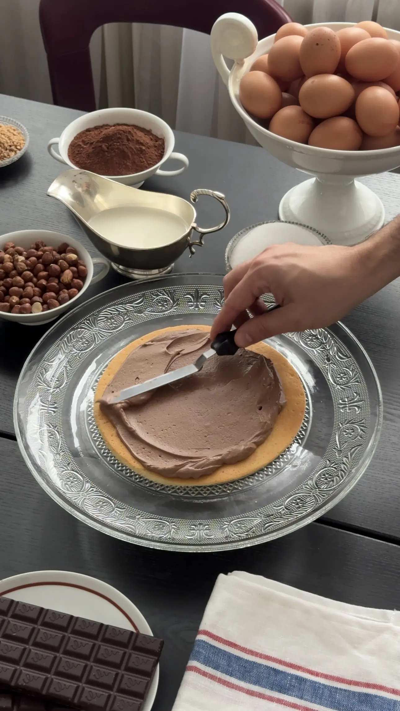 SKORJE: Maslo stepemo s sladkorjem, vanilijo, pecilnim praškom, soljo in limono. Dodamo rumenjake in nato moko. Beljake stepemo s sladkorjem, dokler ne dosežemo mehkih vrhov, in jih nežno dodamo v mešanico rumenjaka v tretjinah, pri tem pa pazimo, da ne iztisnemo preveč zraka. Na papirju za pečenje narišemo kroge in mešanico razporedimo na 8 krogov (23 cm) ter pečemo 10–12 minut pri 180°C.