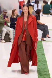 Eden najbolj modnih načinov za kombiniranje rjave barve v letu 2026 je ustvarjanje kontrasta z intenzivnimi, živahnimi barvami. Pomislite na živahne odtenke, polne energije. Zato Lacoste predlaga, da se mahagonijeva rjava, prepoznavna po rdečkastih podtonih, nosi skupaj z rdečo v izdaji, ki deluje naravno in harmonično.