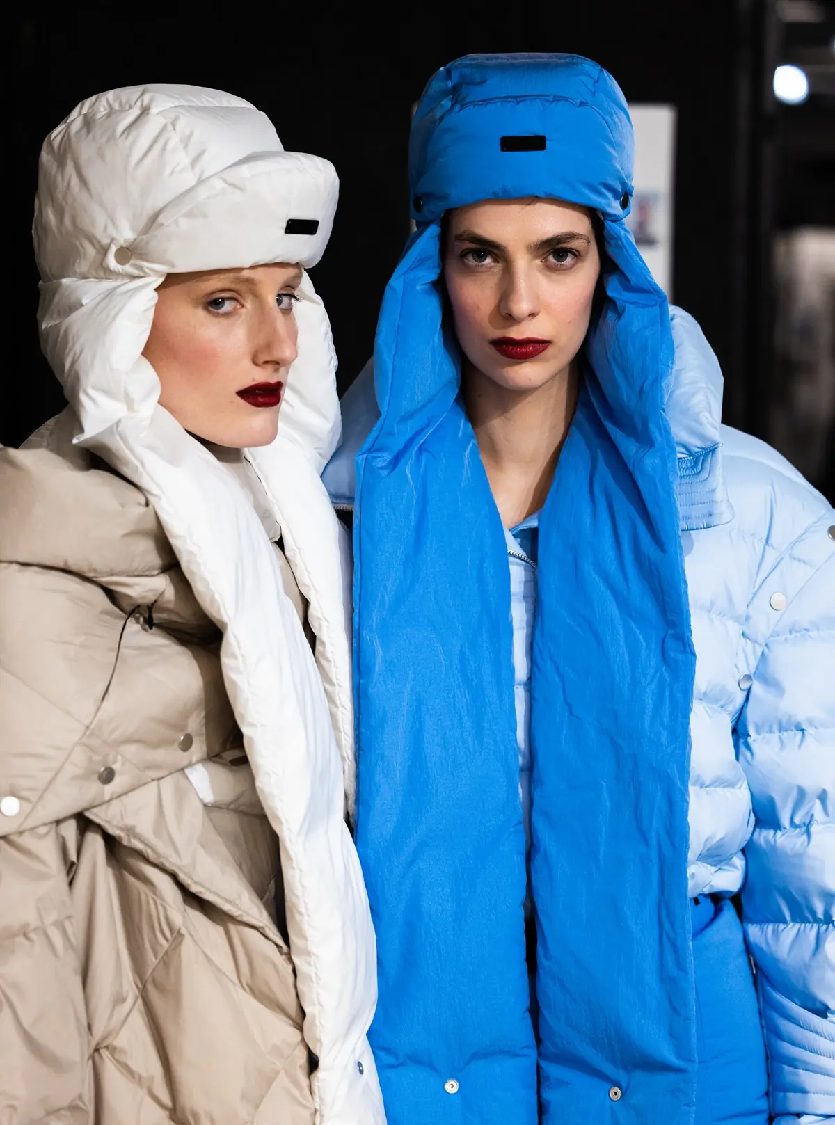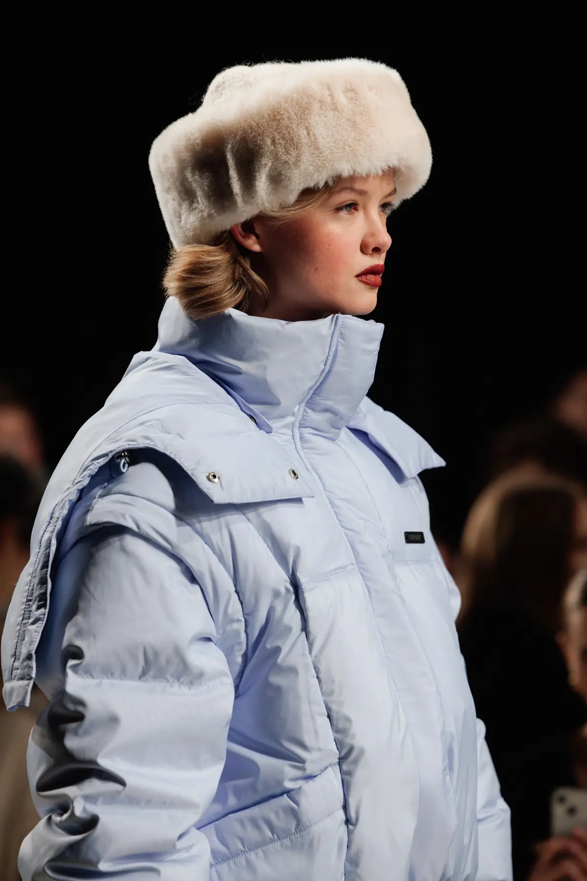 Puffer plašči v kombinaciji s krznenimi čevlji