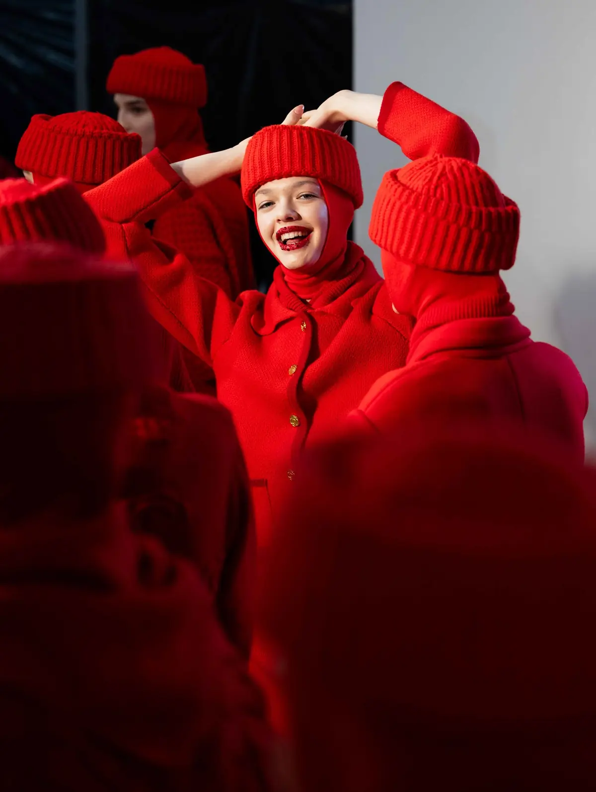 Romunska slow fashion znamka Ami Amalia je s celo paleto različnih proizvodnih tehnik na modni pisti pokazala vsestranskost pletenin, lepota in raznolikost tekstur pa sta bili še toliko bolj očitni, ker je bila celotna kolekcija izdelana v eni barvi. S kroji, detajli in stilizacijami je oblikovalka Amalia Săftoiu skozi svojo modno zgodbo obudila duh šestdesetih let, rdeča barva v sedmih različnih odtenkih pa je pripomogla k še učinkovitejšemu vtisu stajlinga. Razkošne pletenine, narejene iz sedmih vrst naravne preje v romunski pletilni tovarni v Oradei, kot so svila, kašmir, moher in merino volna, so sestavljale vsa oblačila – od sixties kostimov in plaščev do šalov in klobukov, ki so se nosili v paru. Poleg tega, da nas je spomnila na čar sloga šestdesetih, bodo total looki kolekcije jesen/zima 2025/26 tudi odličen navdih, kako nositi rdečo od glave do pet, kot tudi, kako ni nujno, da so pletenine le en kos v naših outfitih. Vse, kar zdaj potrebujemo, so le še dokolenke in dober par Mary Jane čevljev.