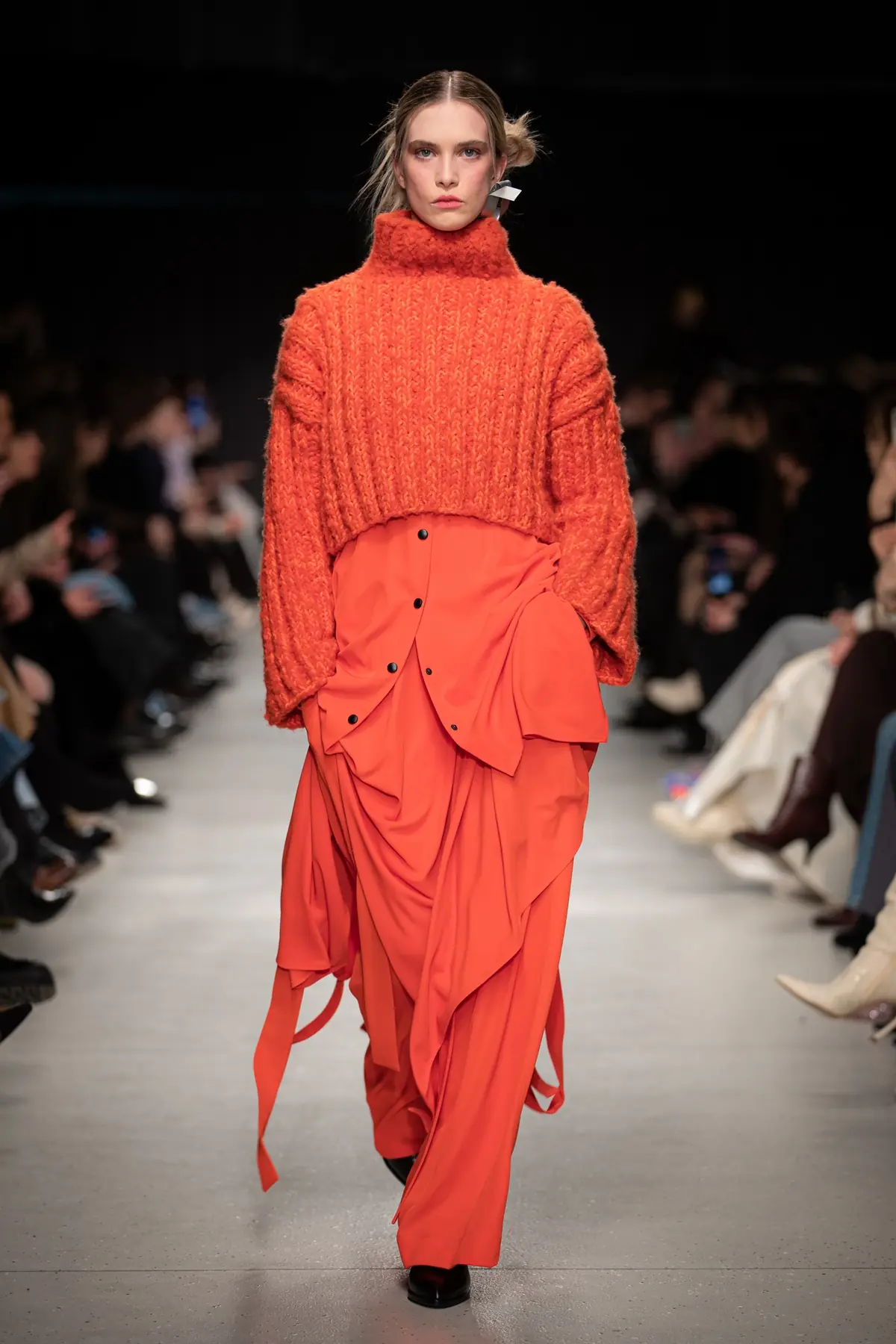 Nenavadne kombinacije tkanin in poigravanje s kontrasti so tvorile hrbtenico BCEFW-a. Poljska znamka Jackob Buczynski je sodelovala s sortirnico rabljenih oblačil Wtórpol, od koder prihajajo vsi materiali uporabljeni za proizvodnjo. Nastale so patchwork kreacije iz nenavadnih kombinacij materialov, tila, steznikov, čipke in usnja. V kolekciji so bile tudi poročne obleke, ki so jih Buczynskiju podarile poljske ženske. Tako so obleke, polne čustev, včasih dobrih in včasih tudi bolečih, dobile novo življenje. Mimogrede, oblikovalec Jackob Buczynski je znan ravno po svoji upcycling metodi, ki tvori ključni del njegove estetike. Nekoliko drugačno taktiko so ubrali pri že omenjeni znamki THEFOUR. Namesto patchworka je THEFOUR kombiniral kontraste s stajlingi, se poigraval s plastmi v oranžni barvi, a s povsem drugačnimi vrstami materialov.