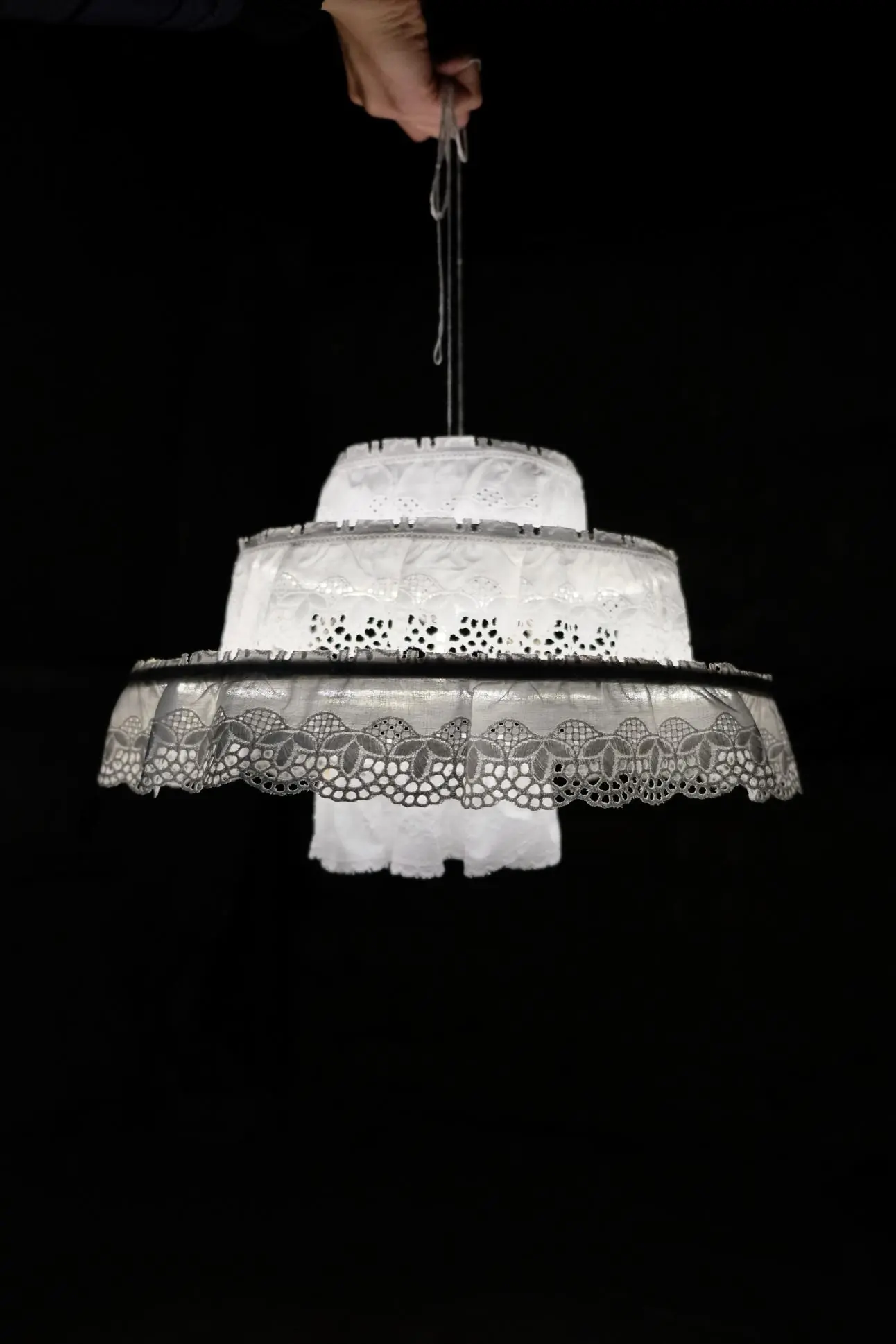 Nekatera dela pristopajo k tej temi na zanimiv način, kot so Oma-Trolley, Flora Sommer, Valentin Bauer in Valentina Sturn. Klasični voziček, ki je bil dolgo cenjen zaradi svoje praktičnosti in je zdaj stigmatiziran kot simbol staranja, je bil prenovljen z novimi oblikami, dodatnimi funkcijami in svežo estetiko, hkrati pa ohranja zanesljivo praktičnost. Ali recimo Secret Garden, oblikovalke Liucije Kostive; Interaktivna odeja, ki raziskuje odnos med popolnostjo in nepopolnostjo. Opazovalci prerežejo površinske niti, ki razkrijejo skrite plasti in živalske motive in simbolizirajo divjo naravo pod kultivirano plastjo, je pojasnila Kostiva. Delo Conserved, Studiappl rekontekstualizira kvačkane prte, čipke in trakove – tekstilije, ki so bile nekoč skrbno izdelane, danes pa so pogosto pozabljene, medtem ko je rokodelstvo skoraj izumrlo. Kristali soli rastejo nad temi občutljivimi tkaninami in simbolično ohranjajo tiha prizadevanja njihovih ženskih ustvarjalk. Namestitev lestencev prikazuje to domačo spretnost kot odraz preobrazbe, staranja in zanemarjenega mojstrstva žensk, so pojasnili oblikovalci. Svečnik zanimivega mladega oblikovalca iz Litve, Vilijusa Dringelisa, združuje digitalno tehnologijo in tradicionalno izdelavo. Odtisi folije iz urbanih in domačih prostorov so digitalno obdelani in kombinirani z različnimi materiali, kar ustvarja edinstven zbirateljski dizajn, je povedal oblikovalec o predmetu, ki me vizualno spominja ravno na staranje.