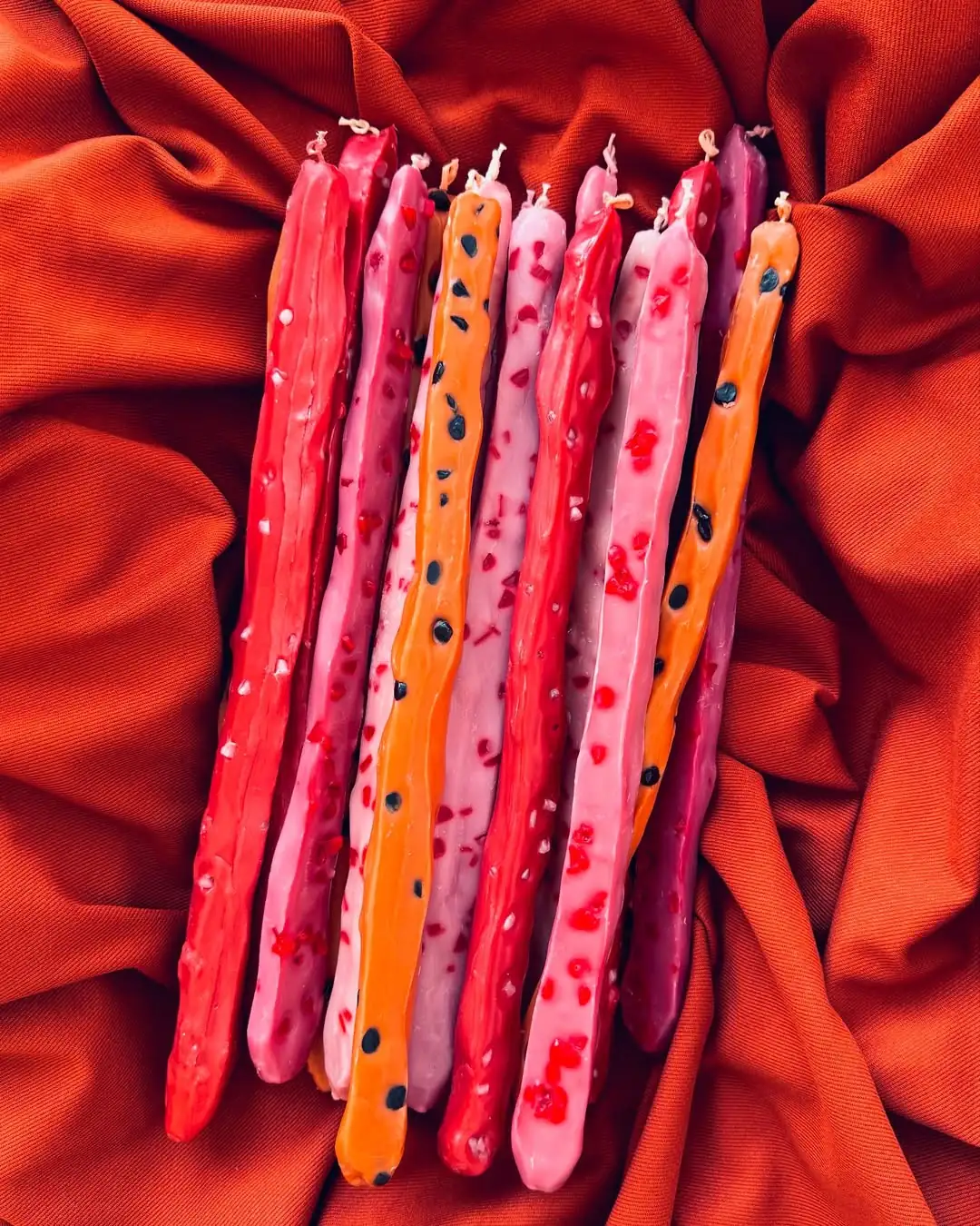 “Ideja se je rodila pred tremi leti,” mi pravi Ejla, “po neuspešnih poskusih meditacije in spoznavanja trataka prakse – opazovanja plamena kot metode koncentracije. Vedno sem čutila, da čas prehitro teče in da ga ne morem dohiteti; Sedeti v tišini se mi je zdelo nemogoče. Toda pri tem sem začel razmišljati o sveči: kako meri čas, kako ostane nespremenjena in ravna, medtem ko čas ni, in kako težko si privoščim odmor.” Na Ejlino razmišljanje sta močno vplivala Ivan Illich in Byung-Chul Han s svojimi idejami o zavestnem upravljanju prostega časa. “Prejšnja praksa linoreza in slikanja mi je pomagala, da sem “stopila” iz časa, nato pa sem spoznala, da mora biti meditativna praksa tudi fizična, vezana na roke in material. Sveče so tako postale moj medij in orodje za vizualizacijo minljivosti in sledi, ki jih pušča čas,” mi je o svojem poetičnem pristopu povedala Ejla.