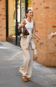 Ugbome vidi vzpon hibridnih superg kot odgovor na trenutni kulturni trenutek. “Mary Jane superge in vse te silhuete, ki presegajo žanre, nam kažejo, da ljudje želijo udobje superg, vendar brez kaosa sneaker-kulture,” pravi. “Trend hibridov temelji na razbijanju kategorij, ker se toge definicije ne ujemajo več s tem, kako se ljudje dejansko oblačijo ali živijo. Zato so povsod Tabi kopije (Margiele) in zato znamke vse bolj eksperimentirajo s sponkami in zadrgami, ki niso klasične vezalke.”